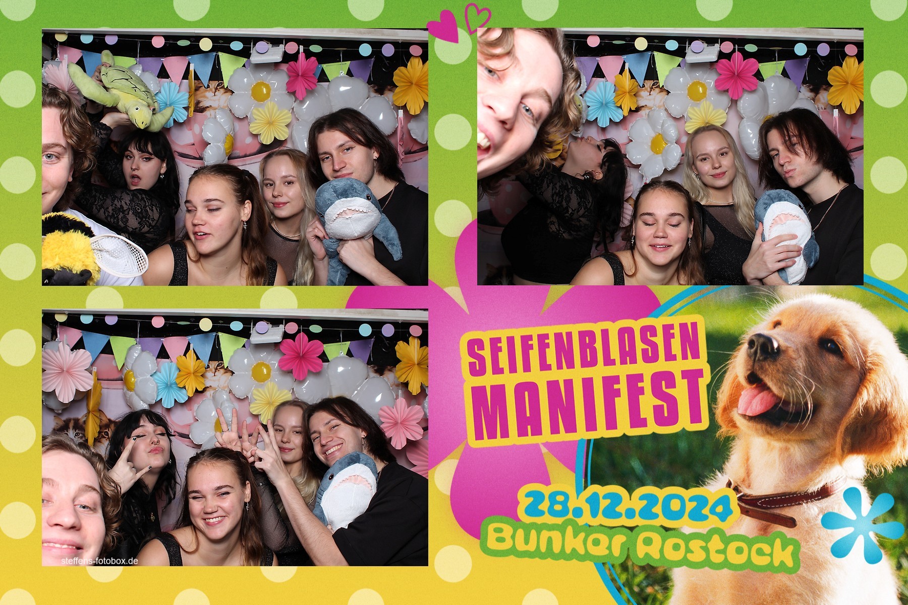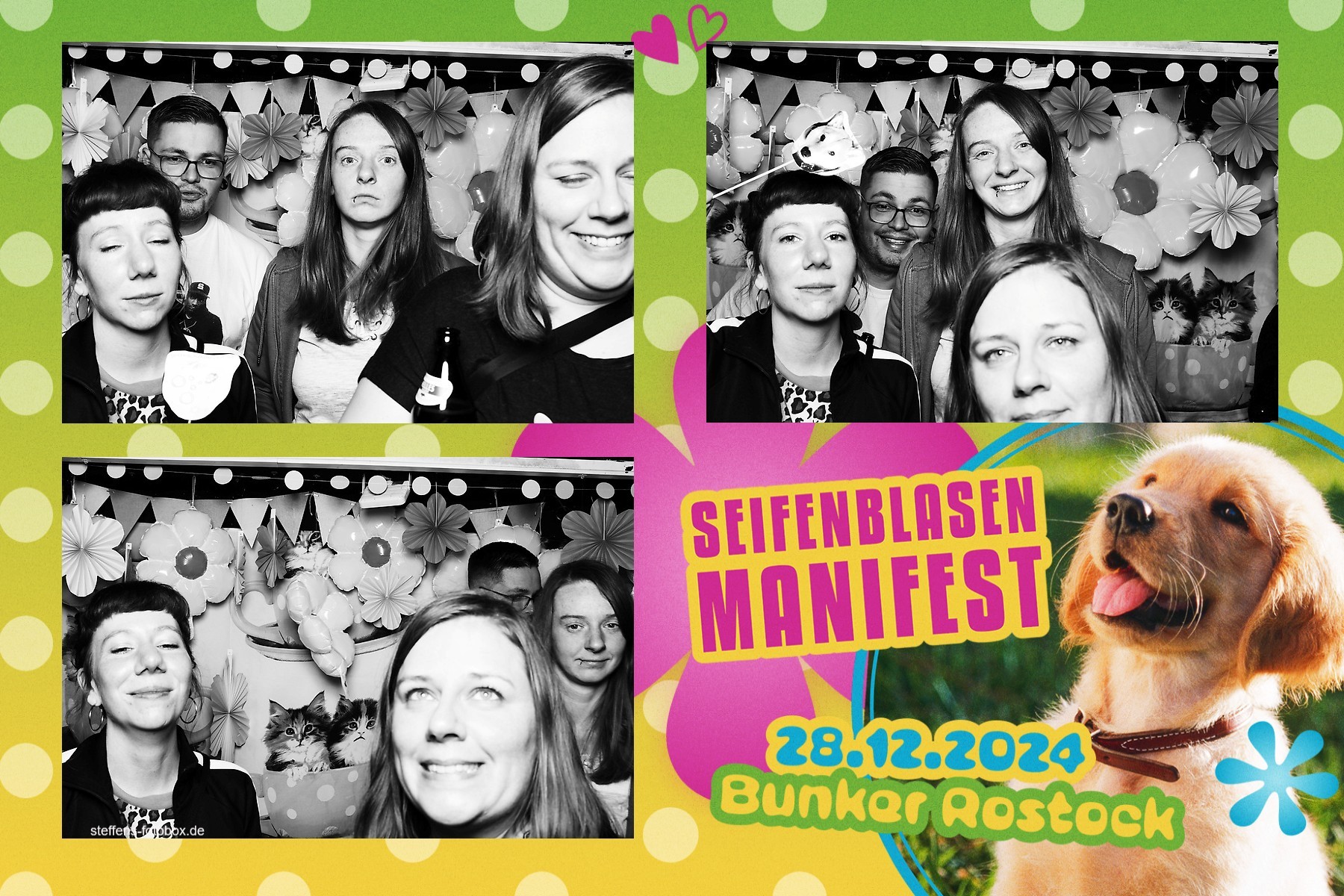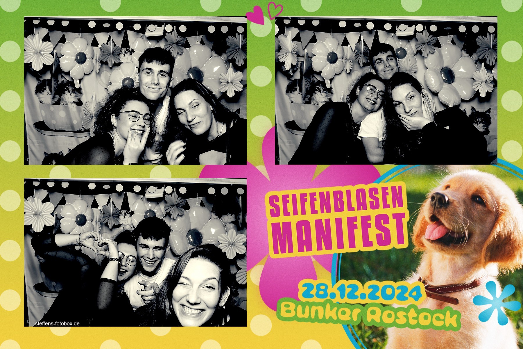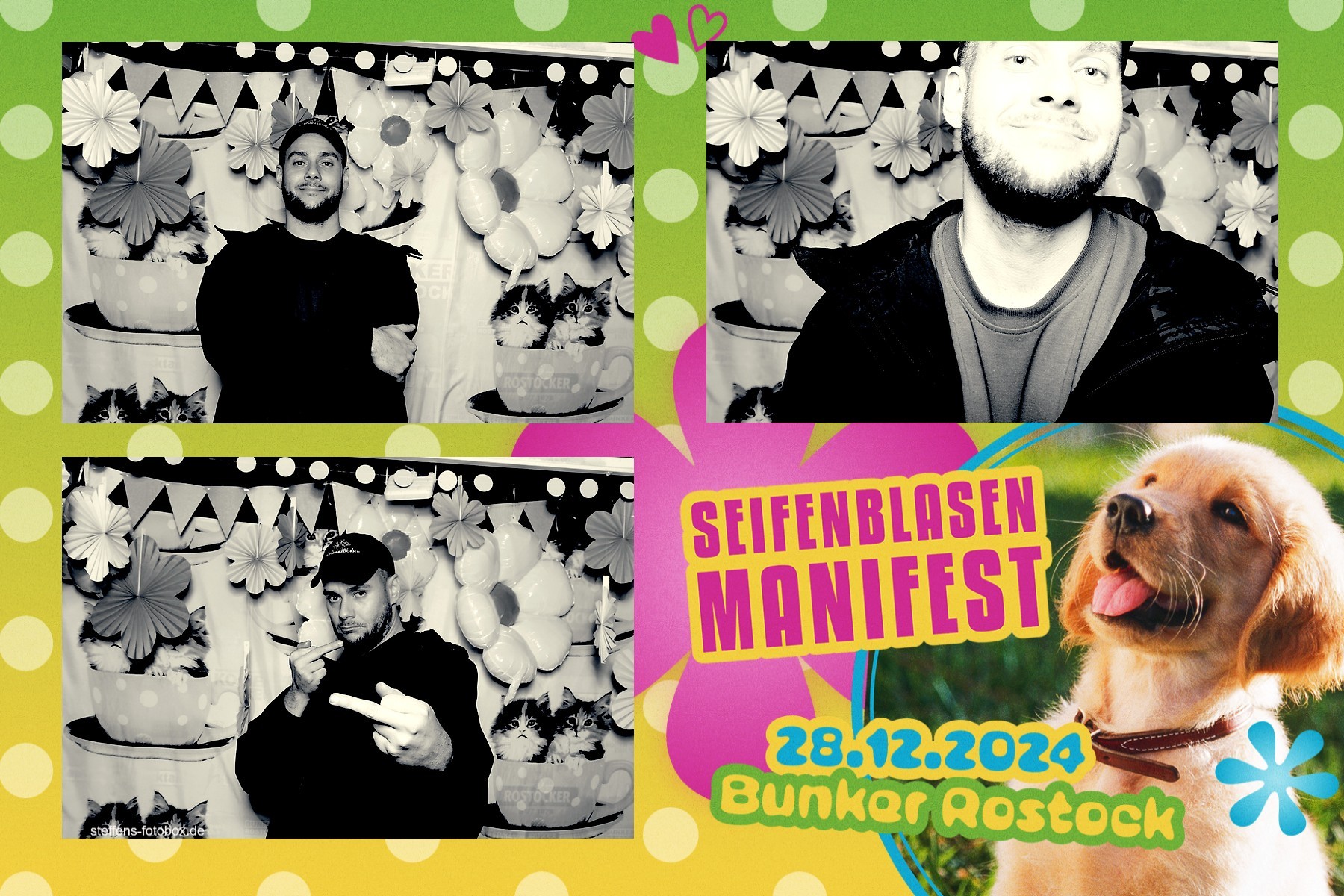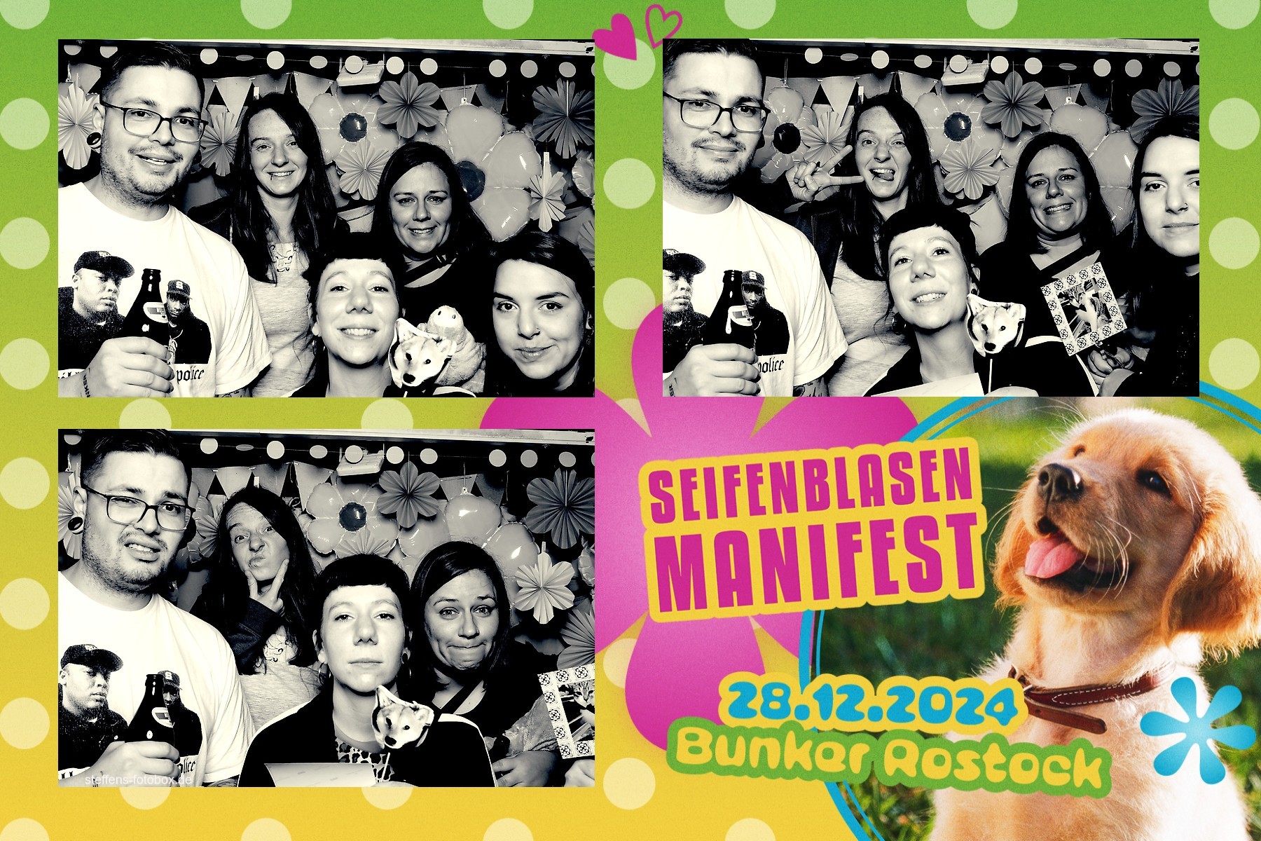Alle Fotos aus der Fotobox beim 30. Seifenblasenmanifest am 28.12.2024 im Bunker Rostock.