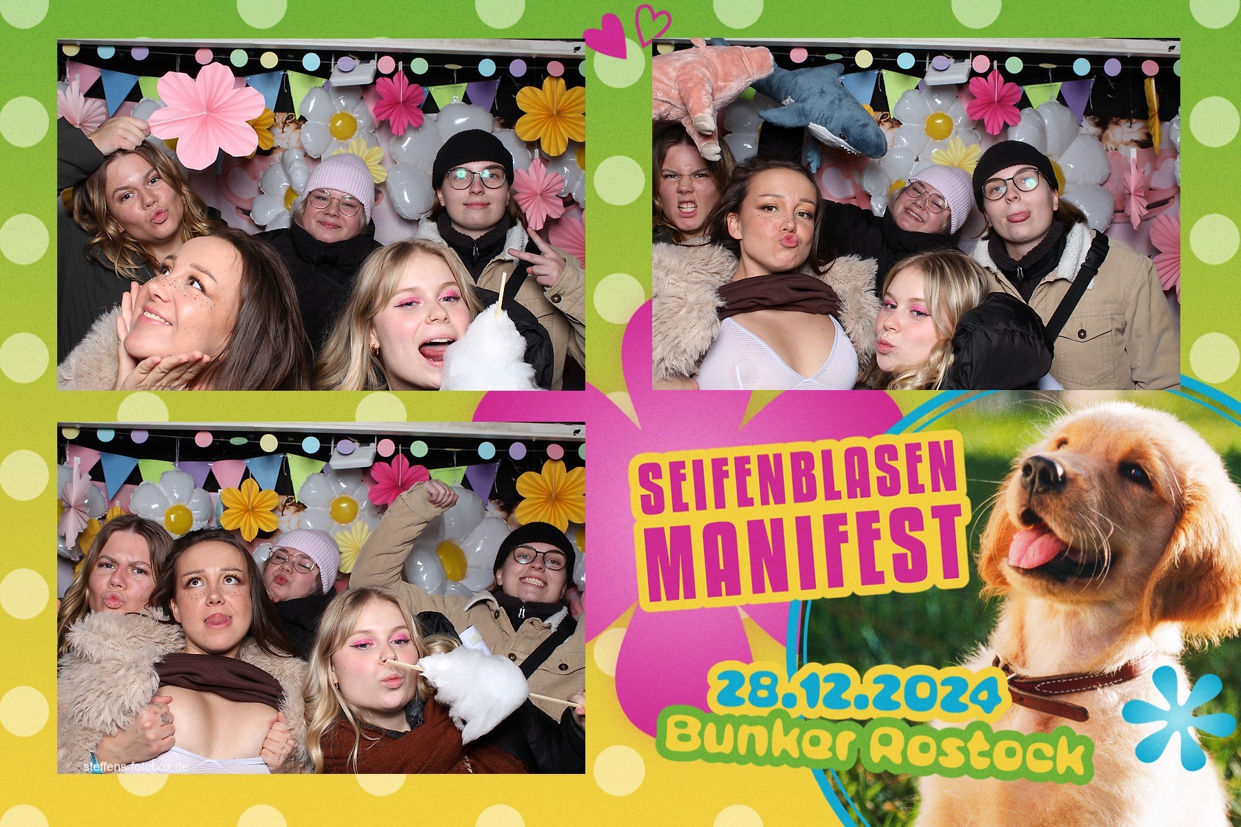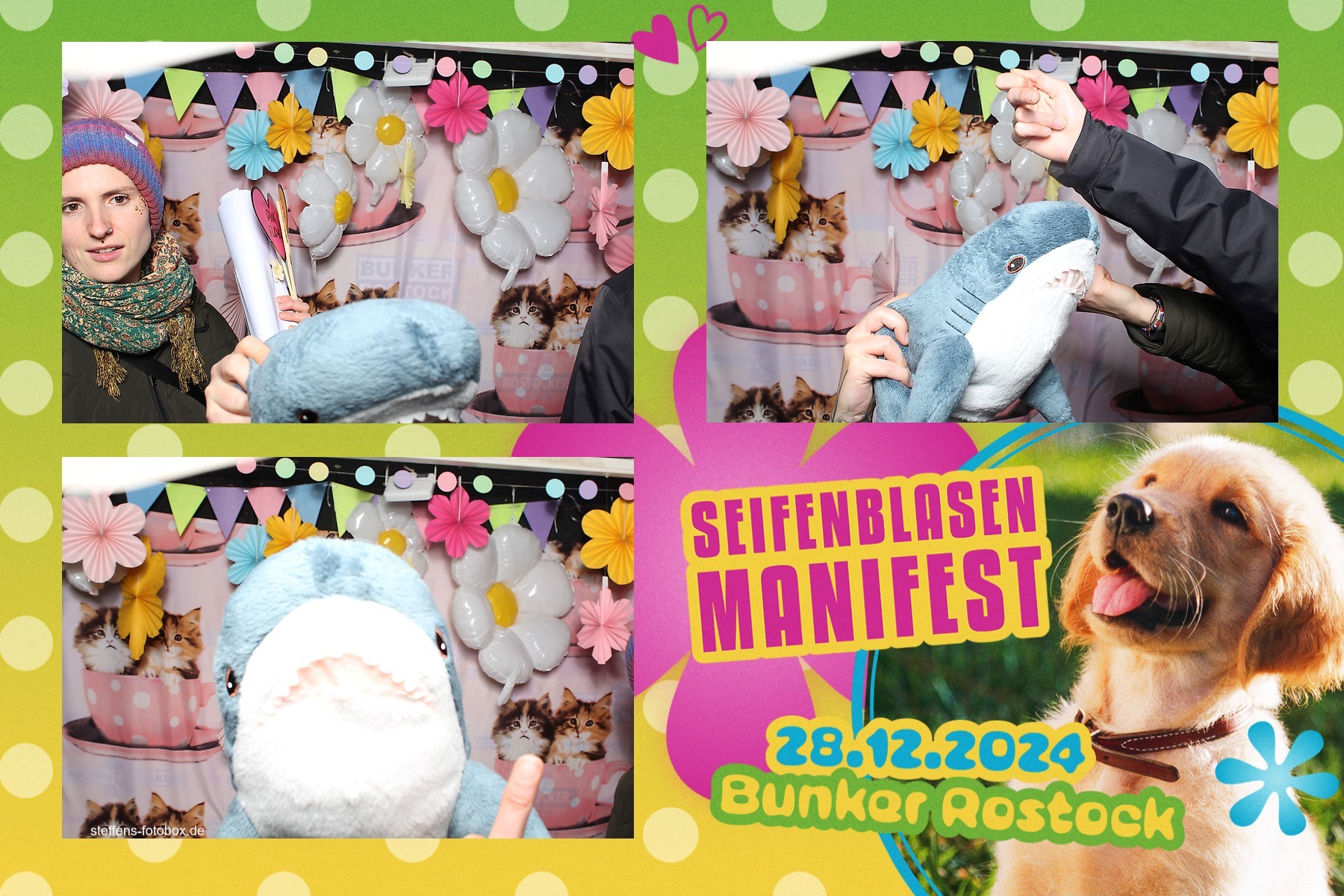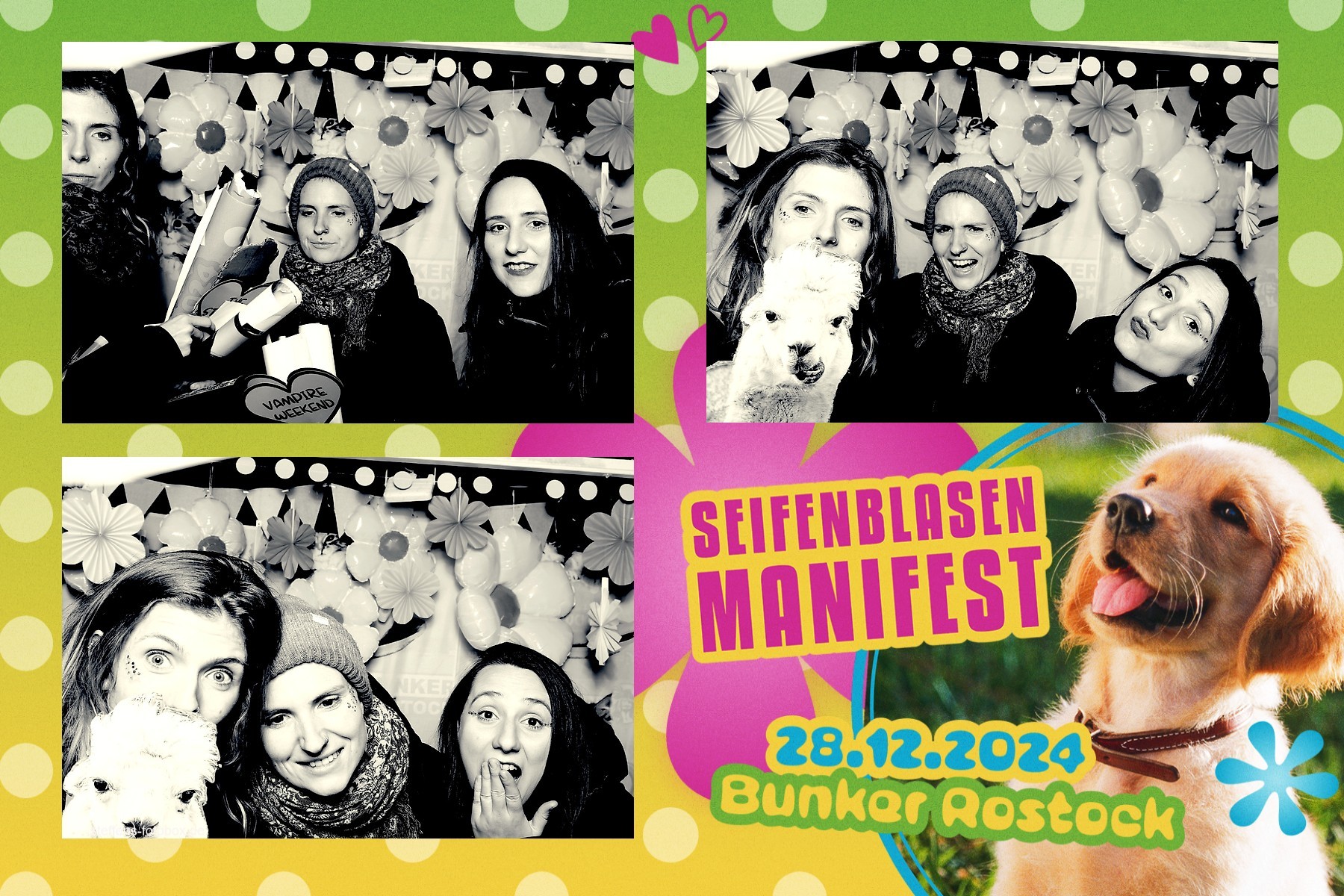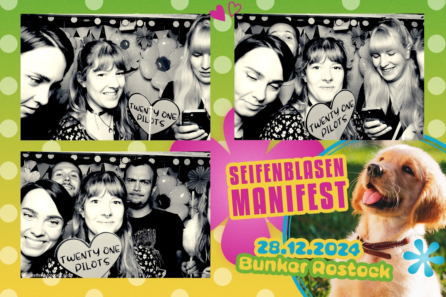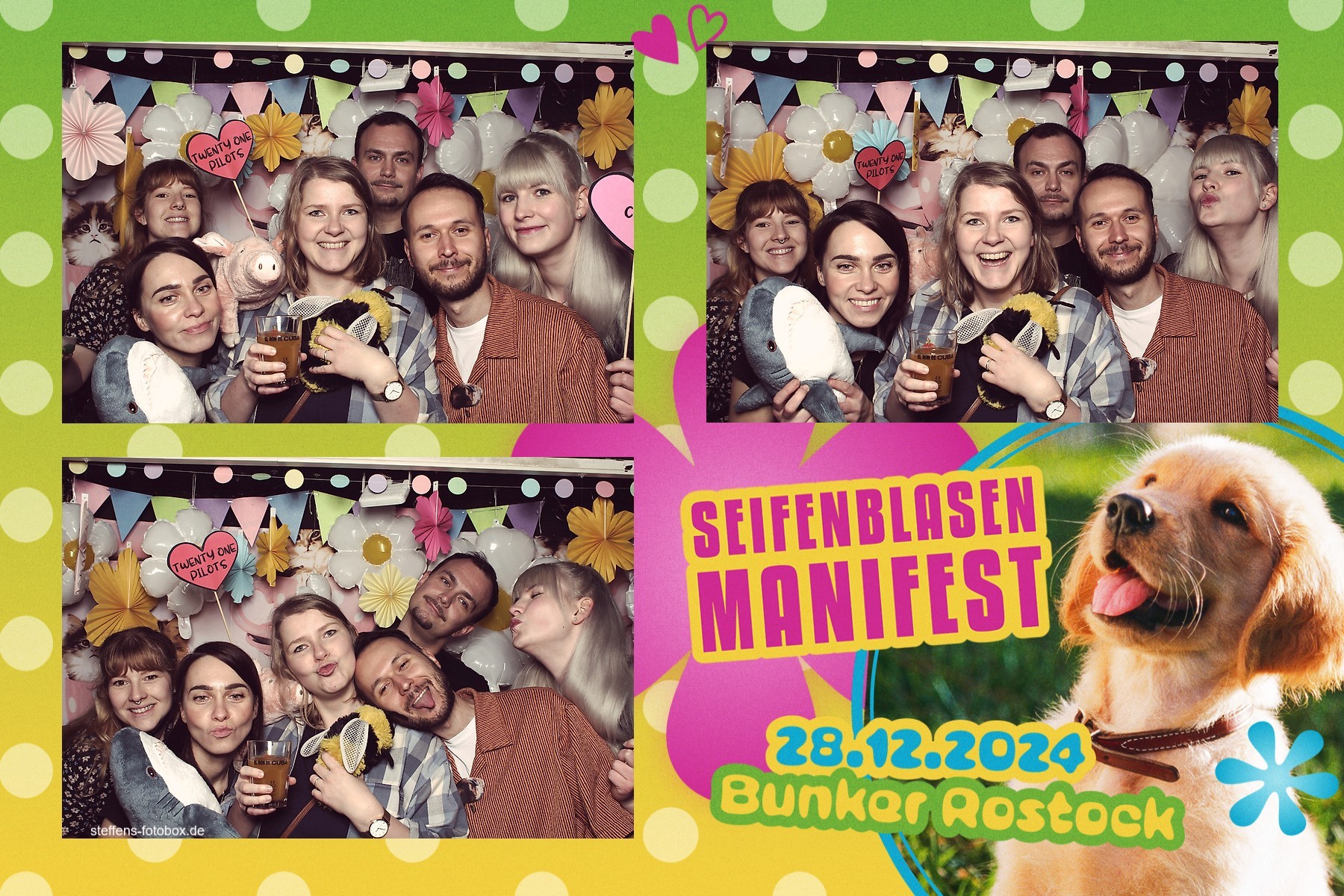 Alle Fotos aus der Fotobox beim 30. Seifenblasenmanifest am 28.12.2024 im Bunker Rostock.