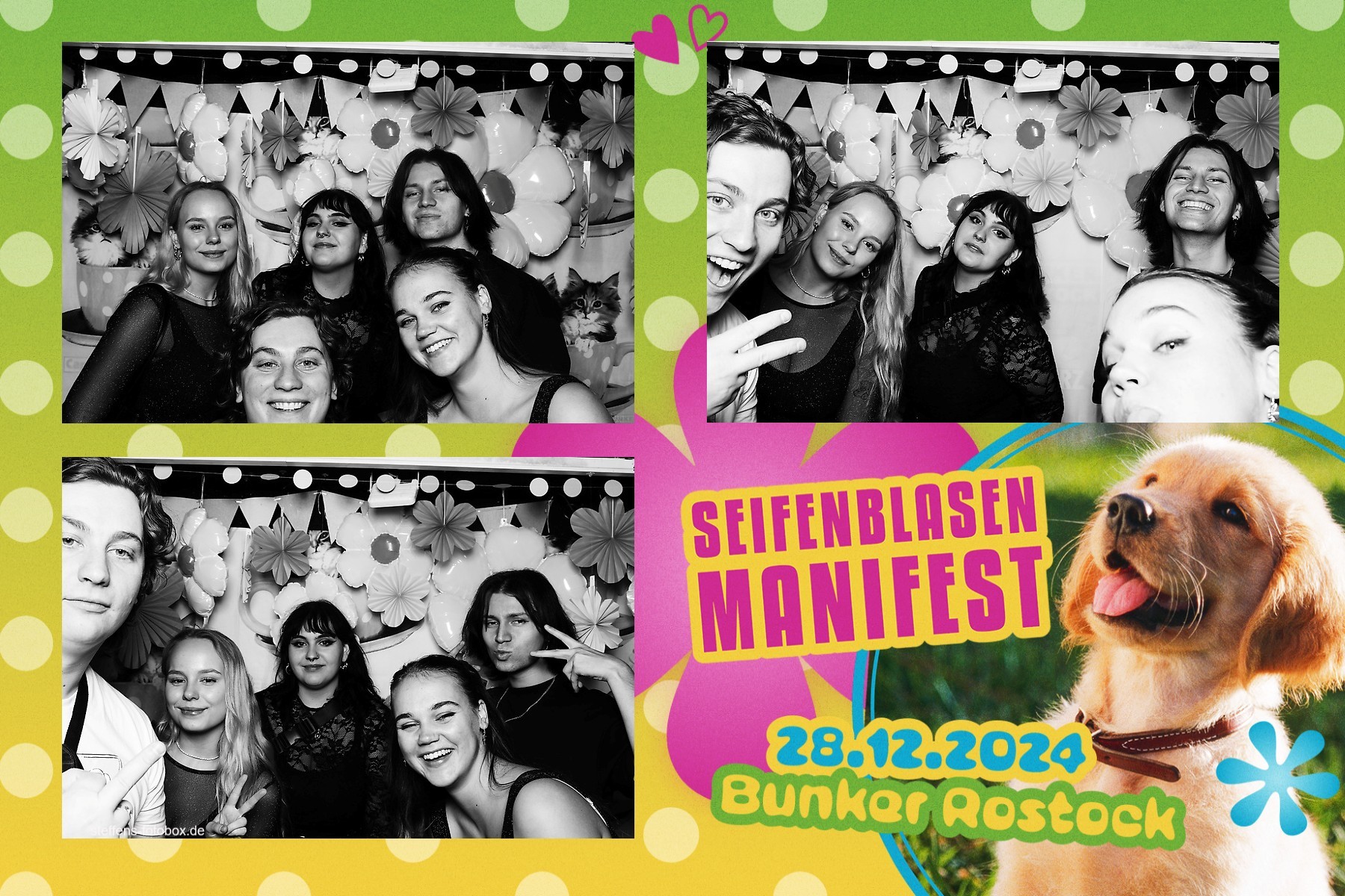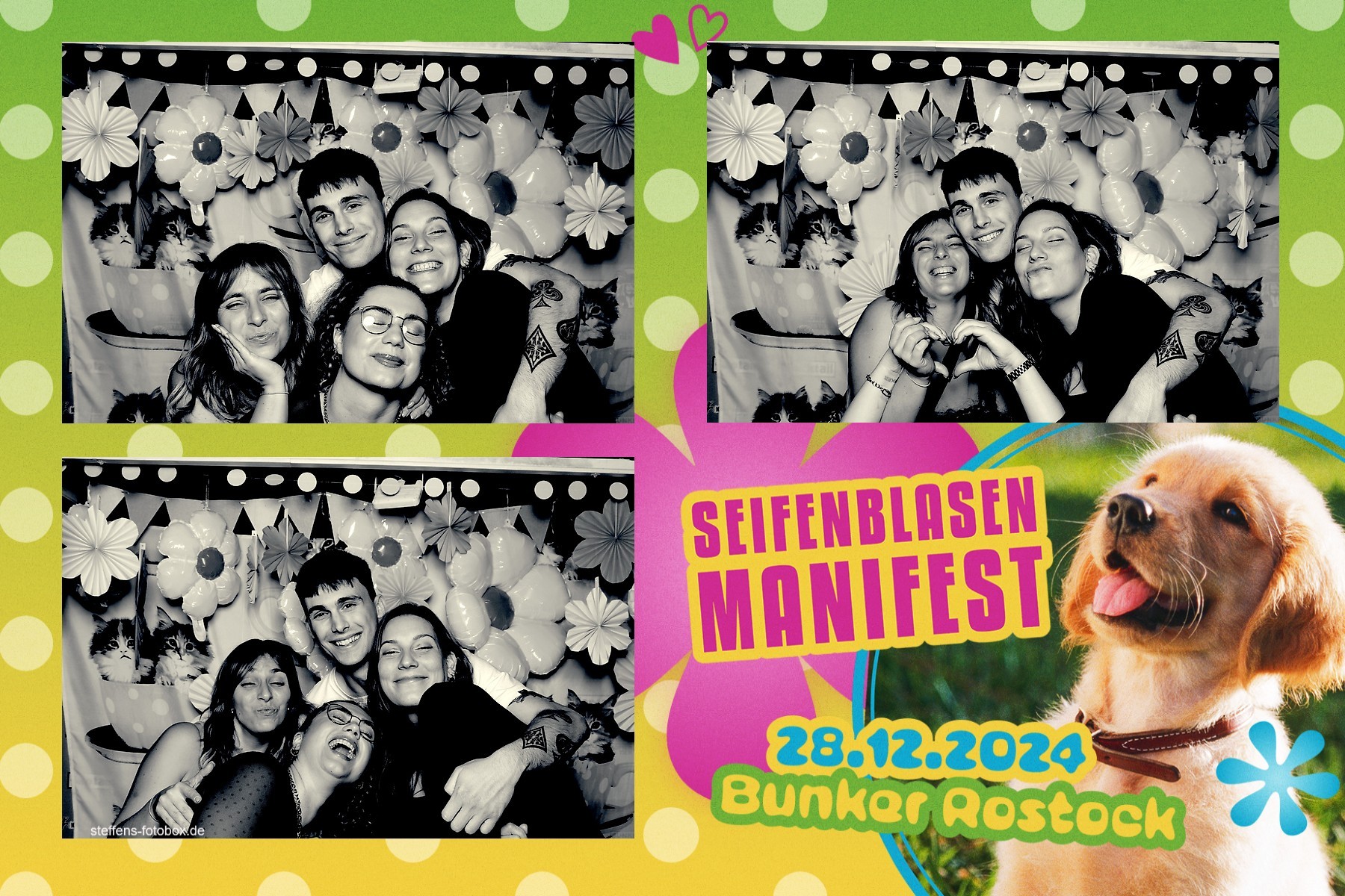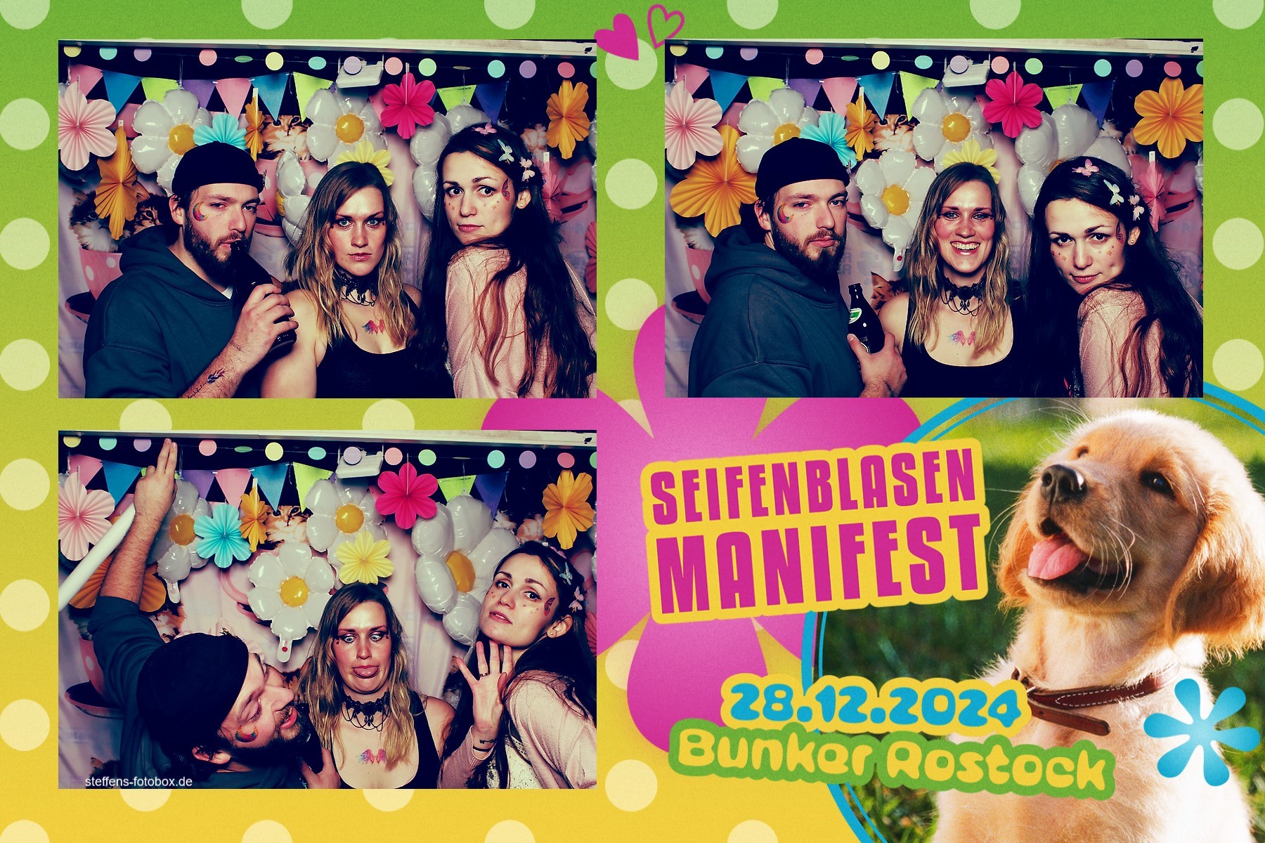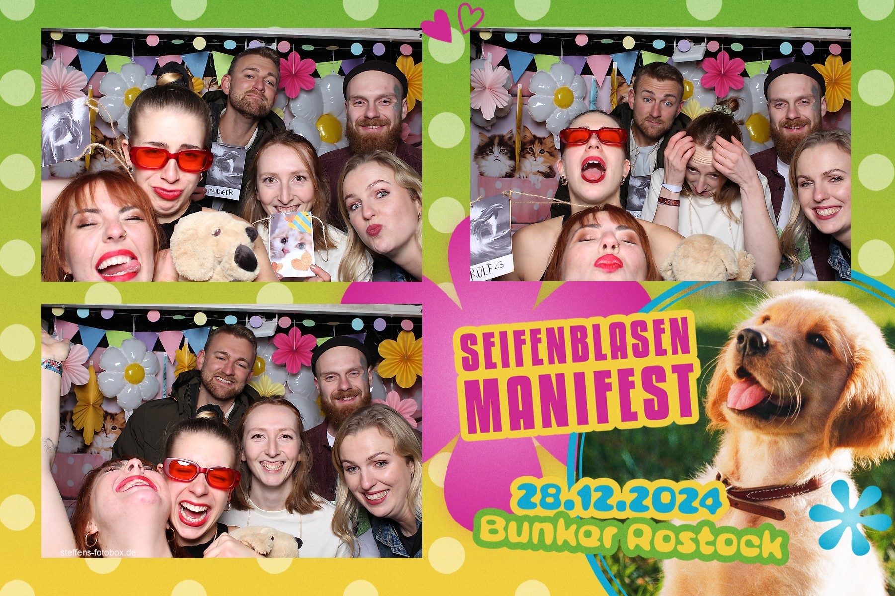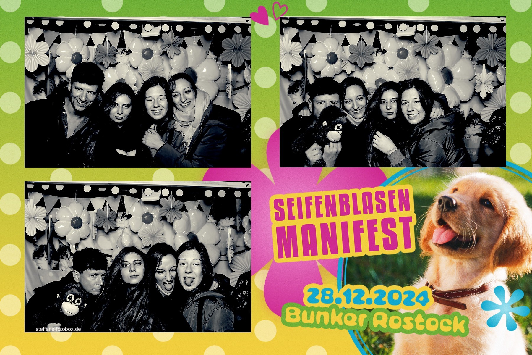 Alle Fotos aus der Fotobox beim 30. Seifenblasenmanifest am 28.12.2024 im Bunker Rostock.