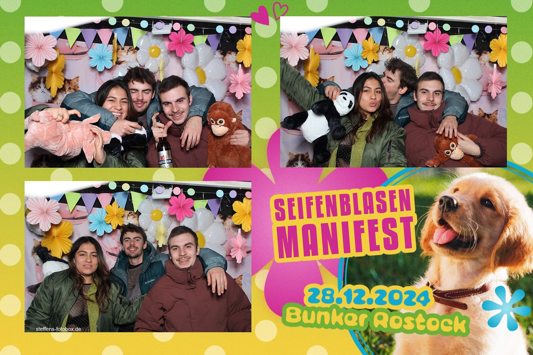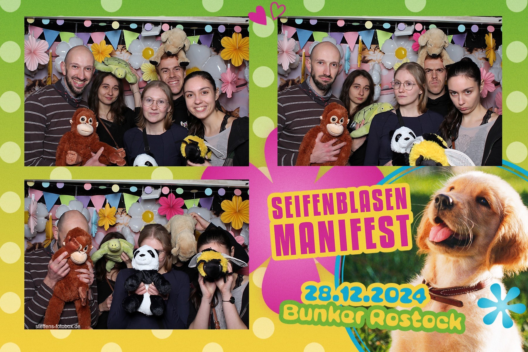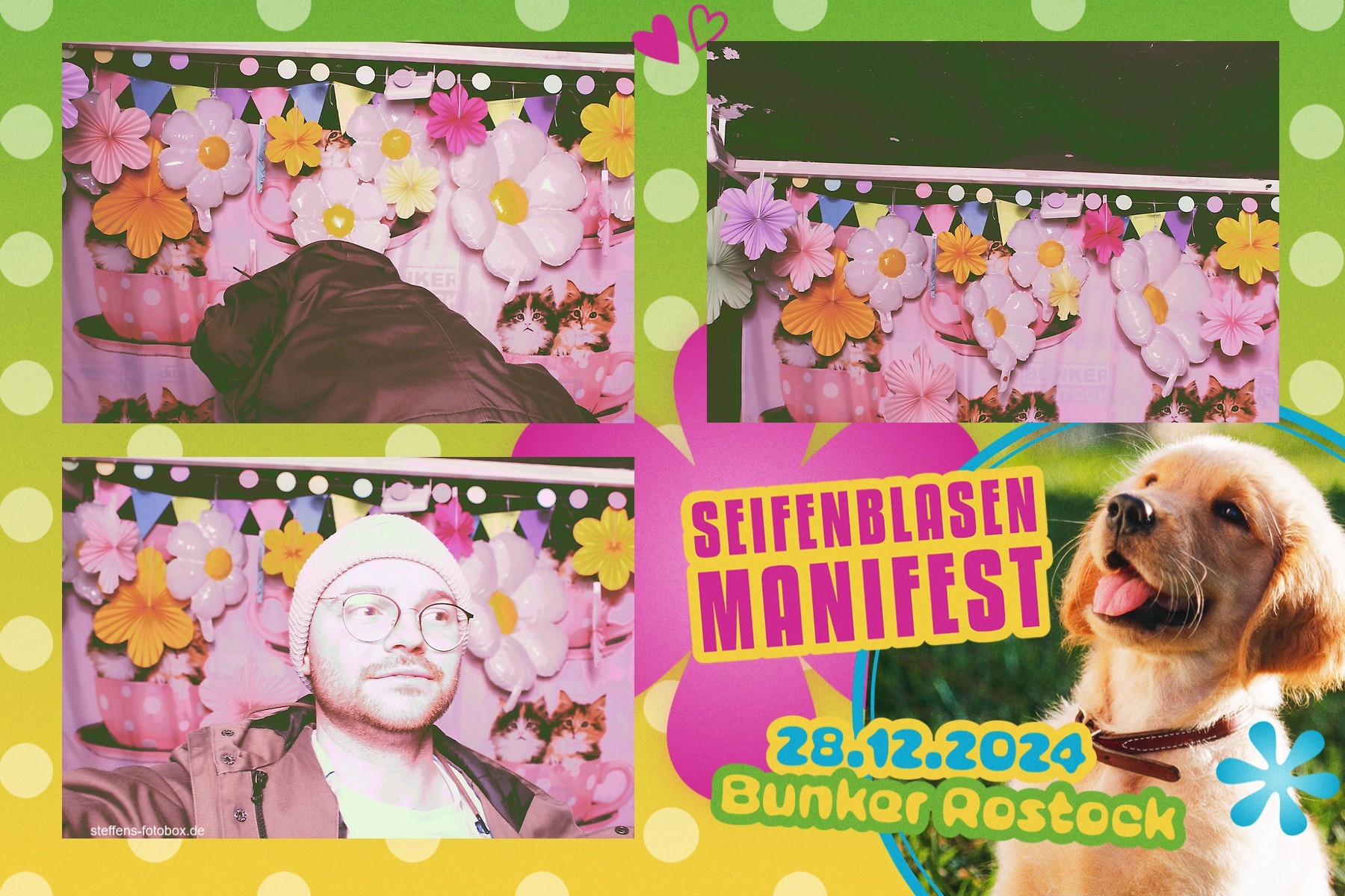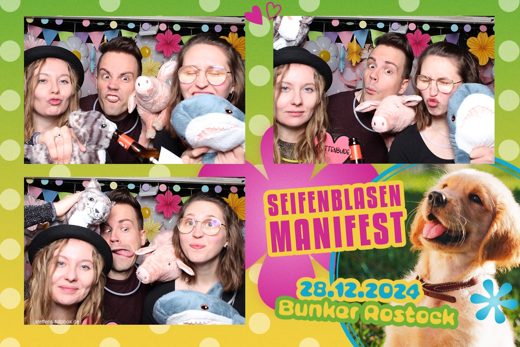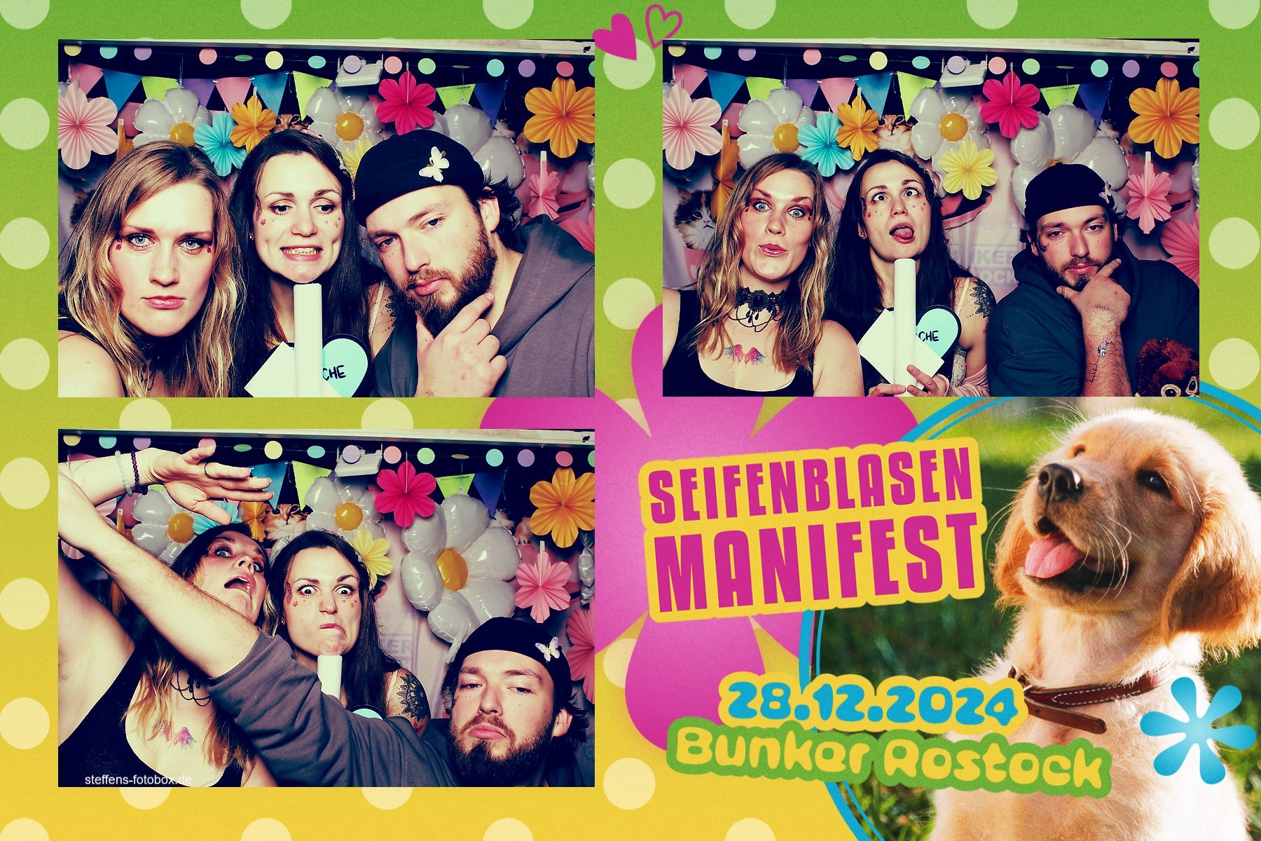 Alle Fotos aus der Fotobox beim 30. Seifenblasenmanifest am 28.12.2024 im Bunker Rostock.
