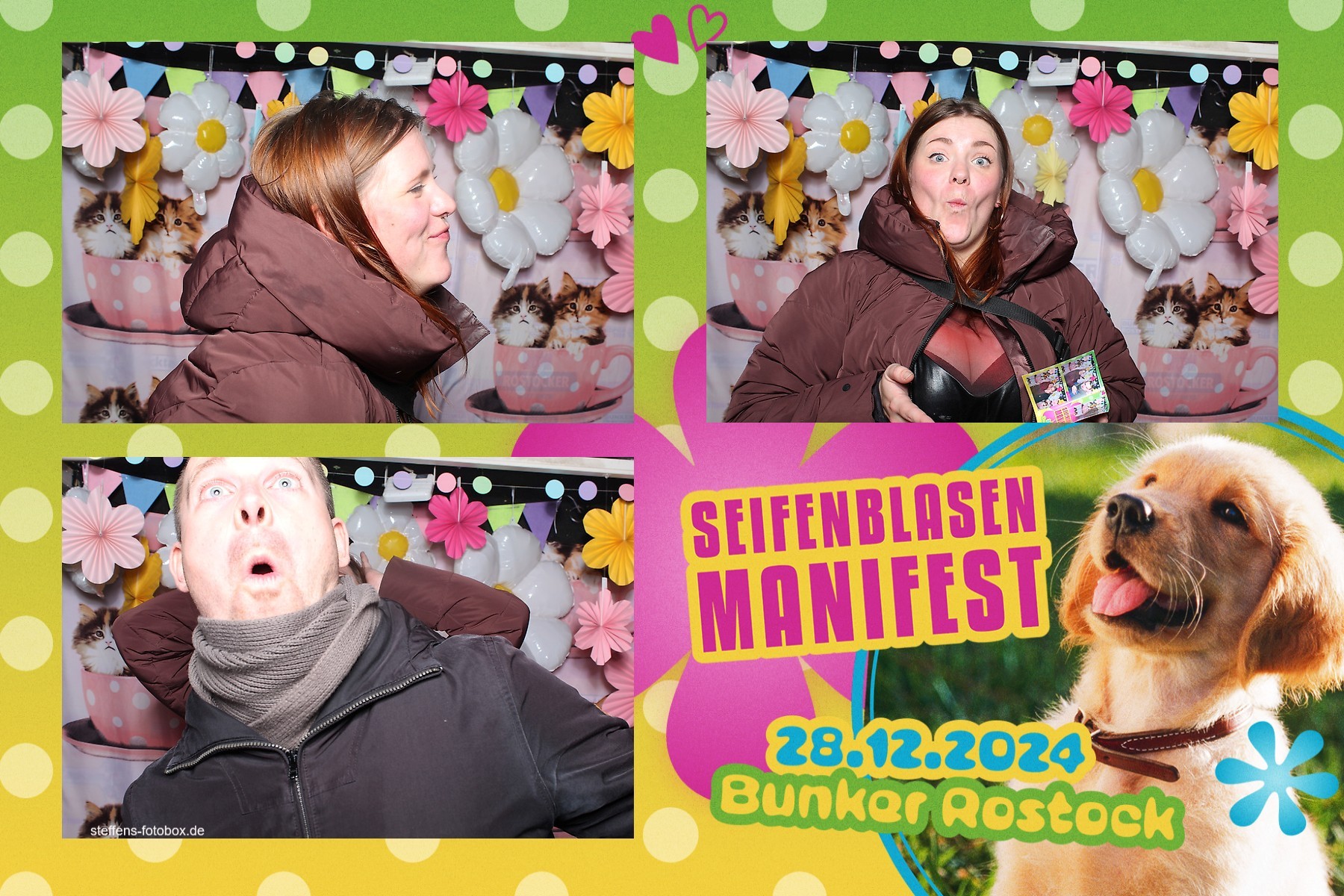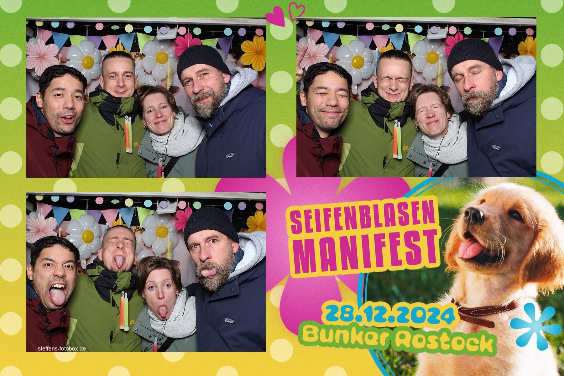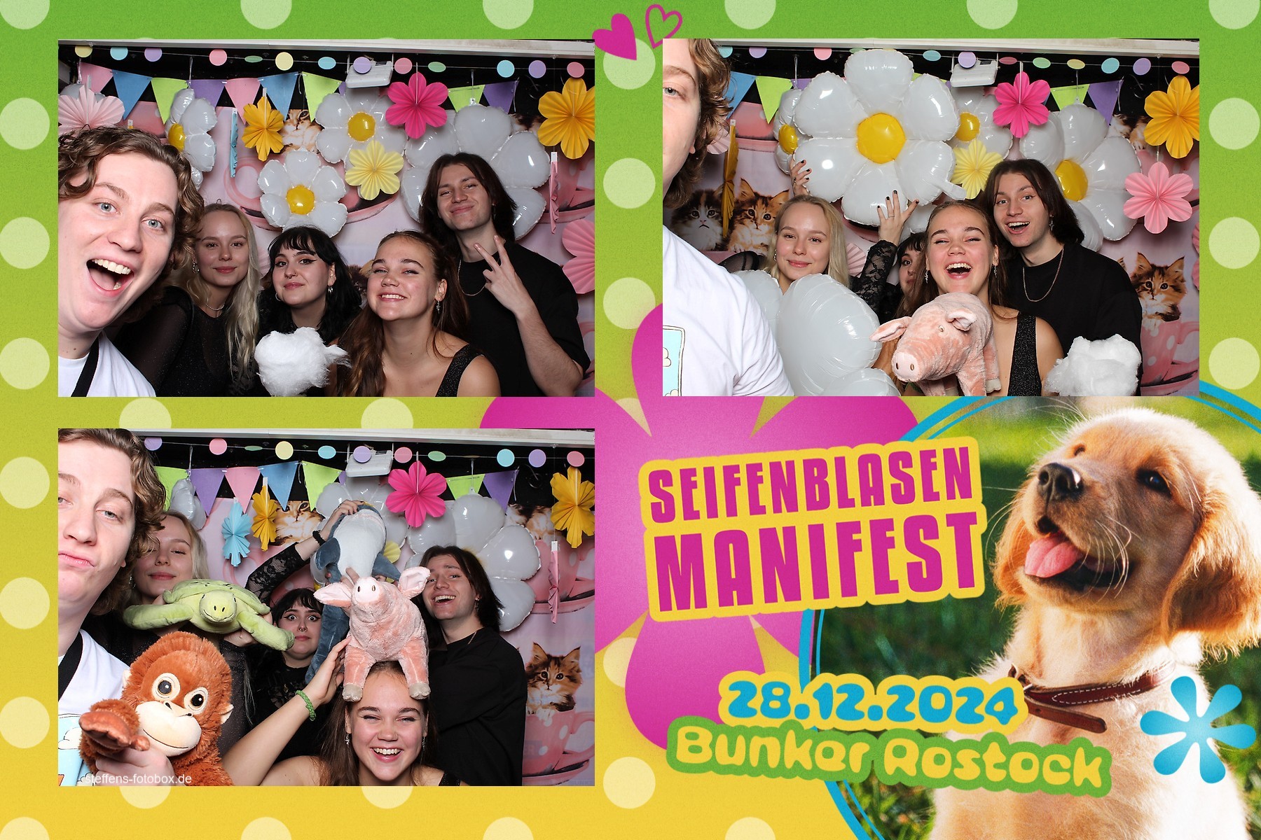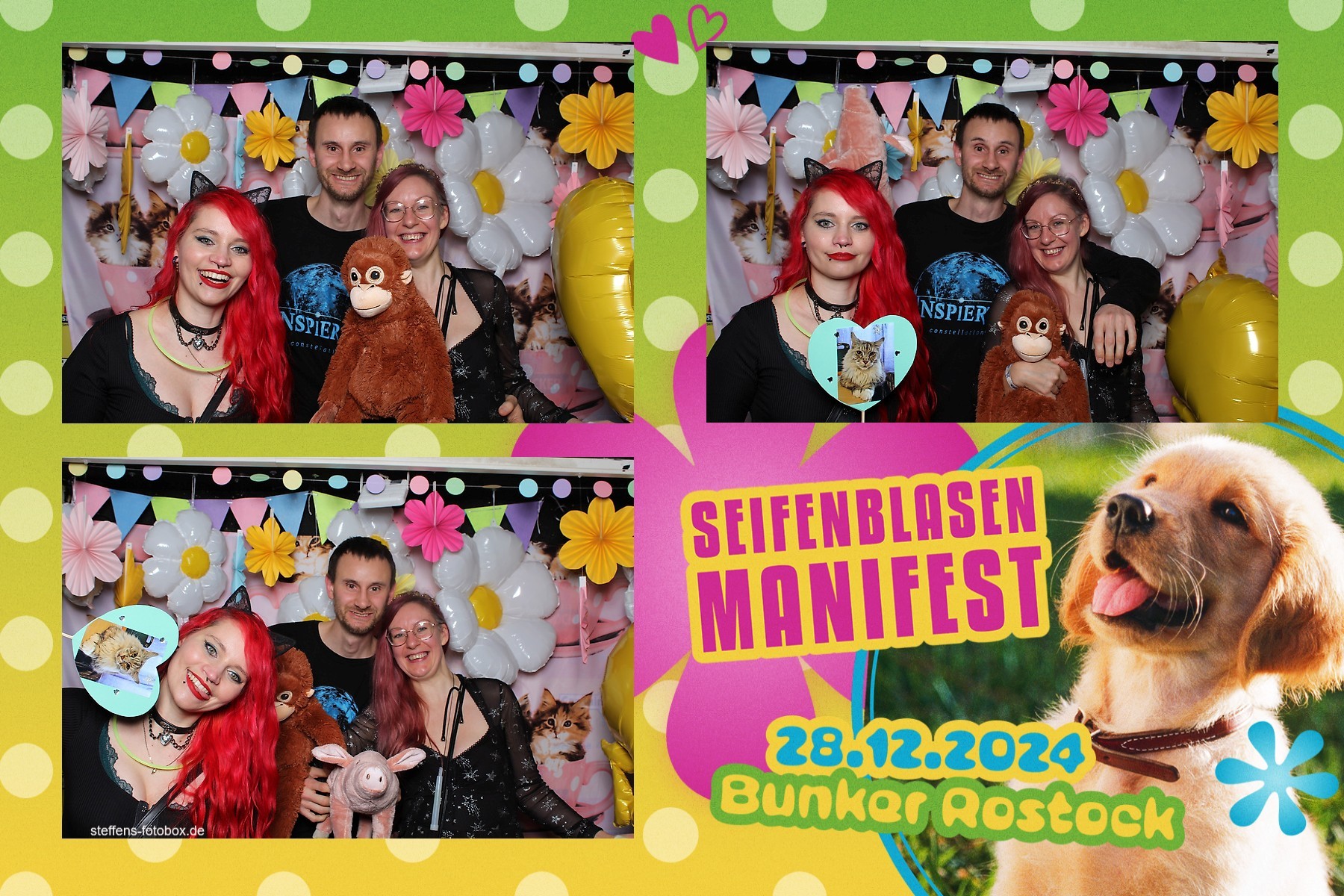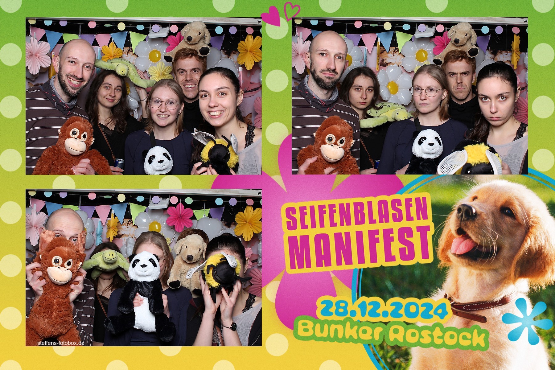 Alle Fotos aus der Fotobox beim 30. Seifenblasenmanifest am 28.12.2024 im Bunker Rostock.