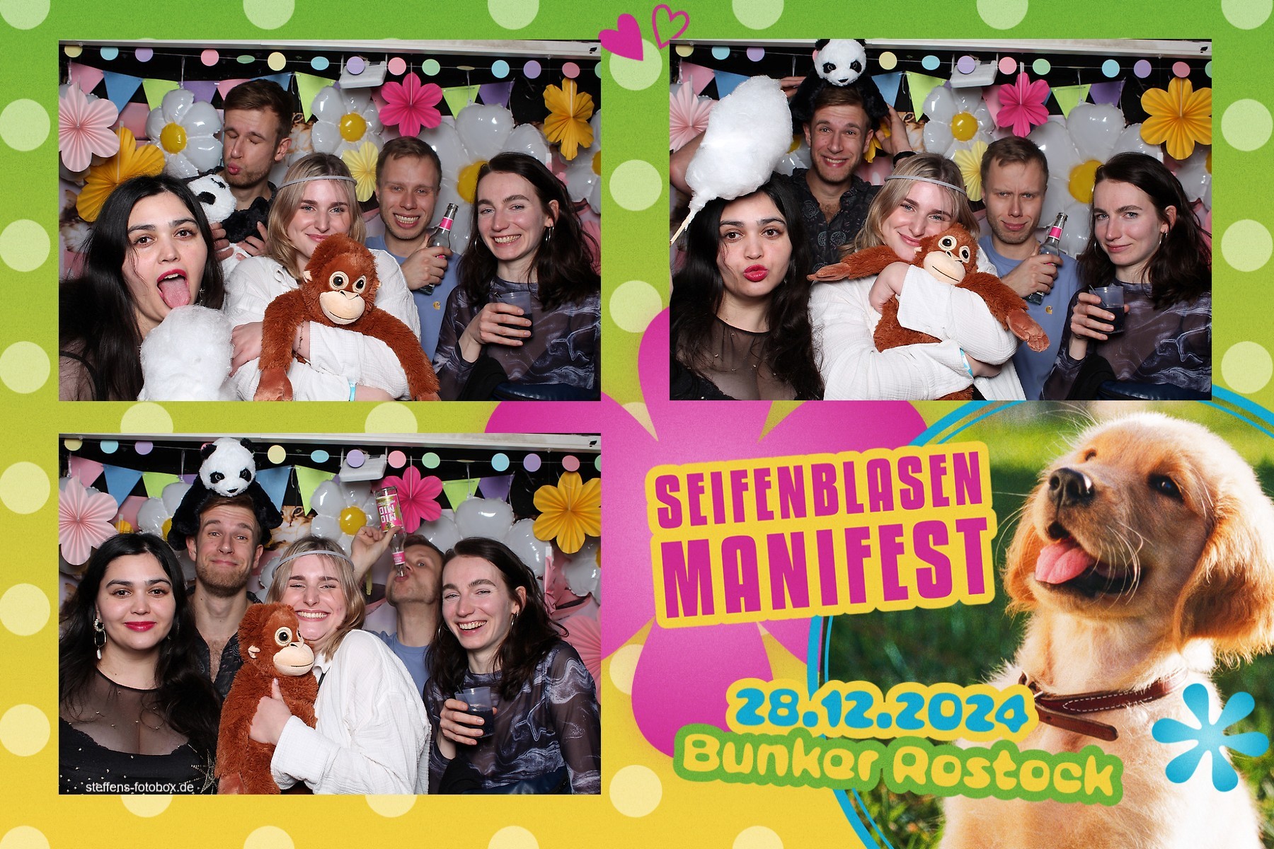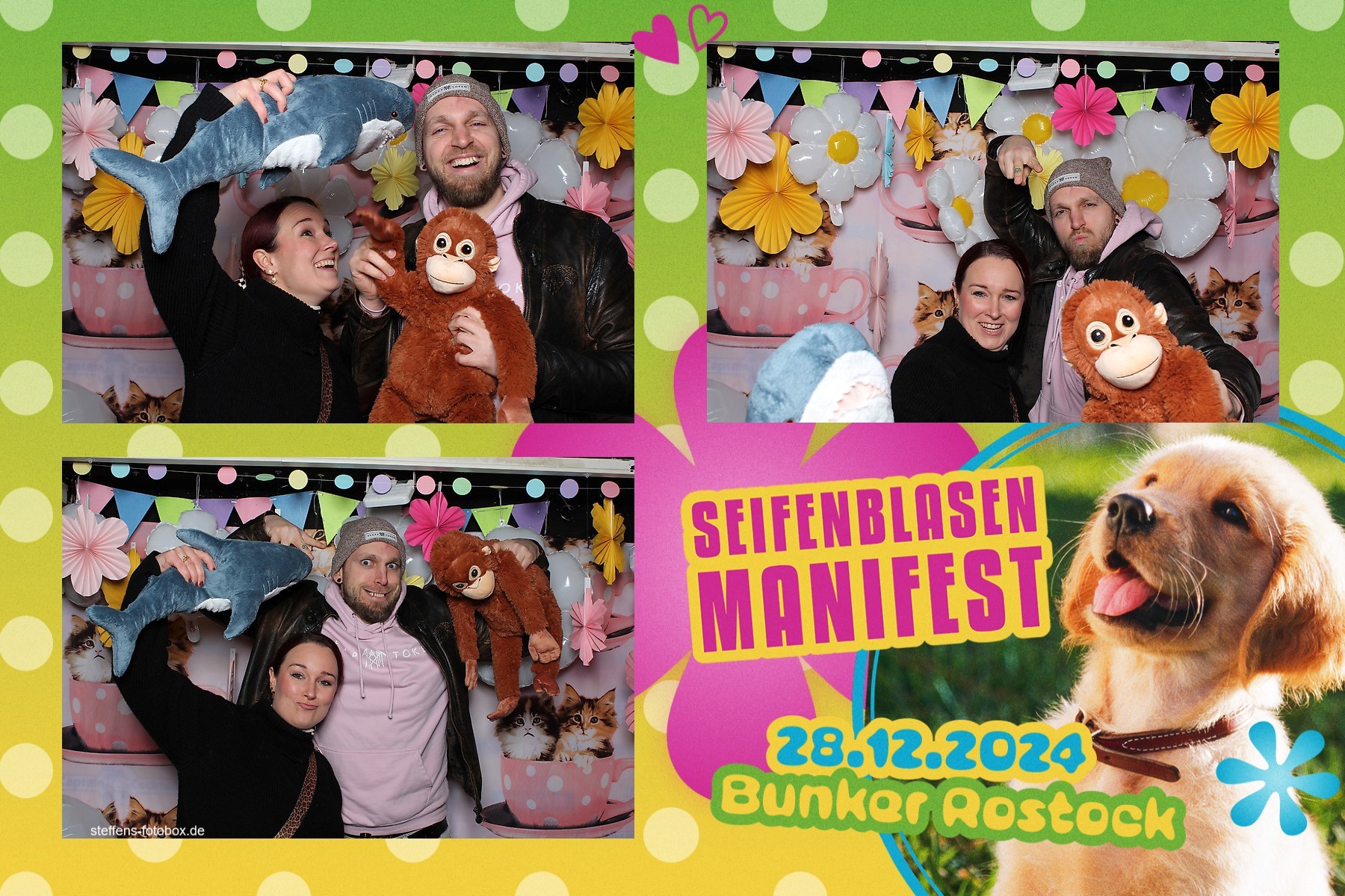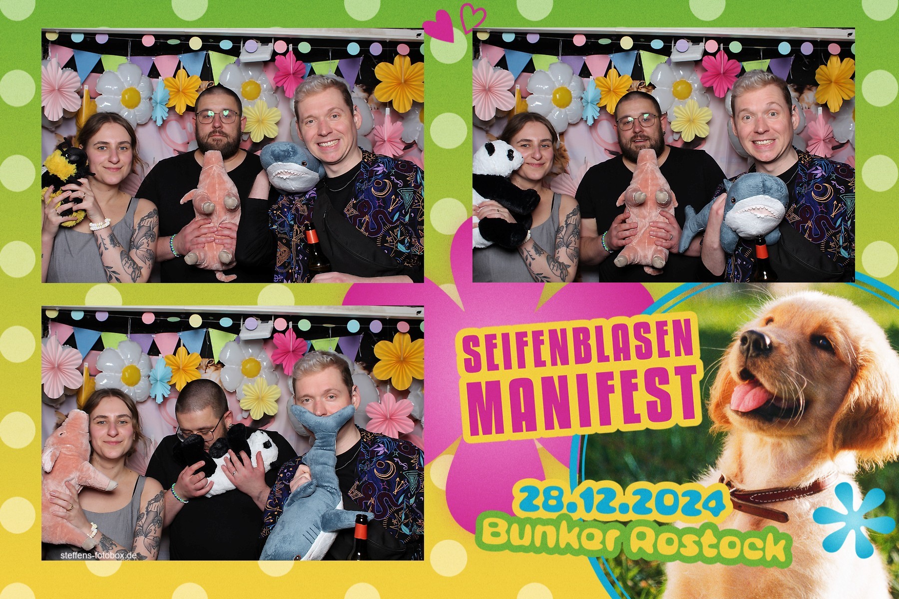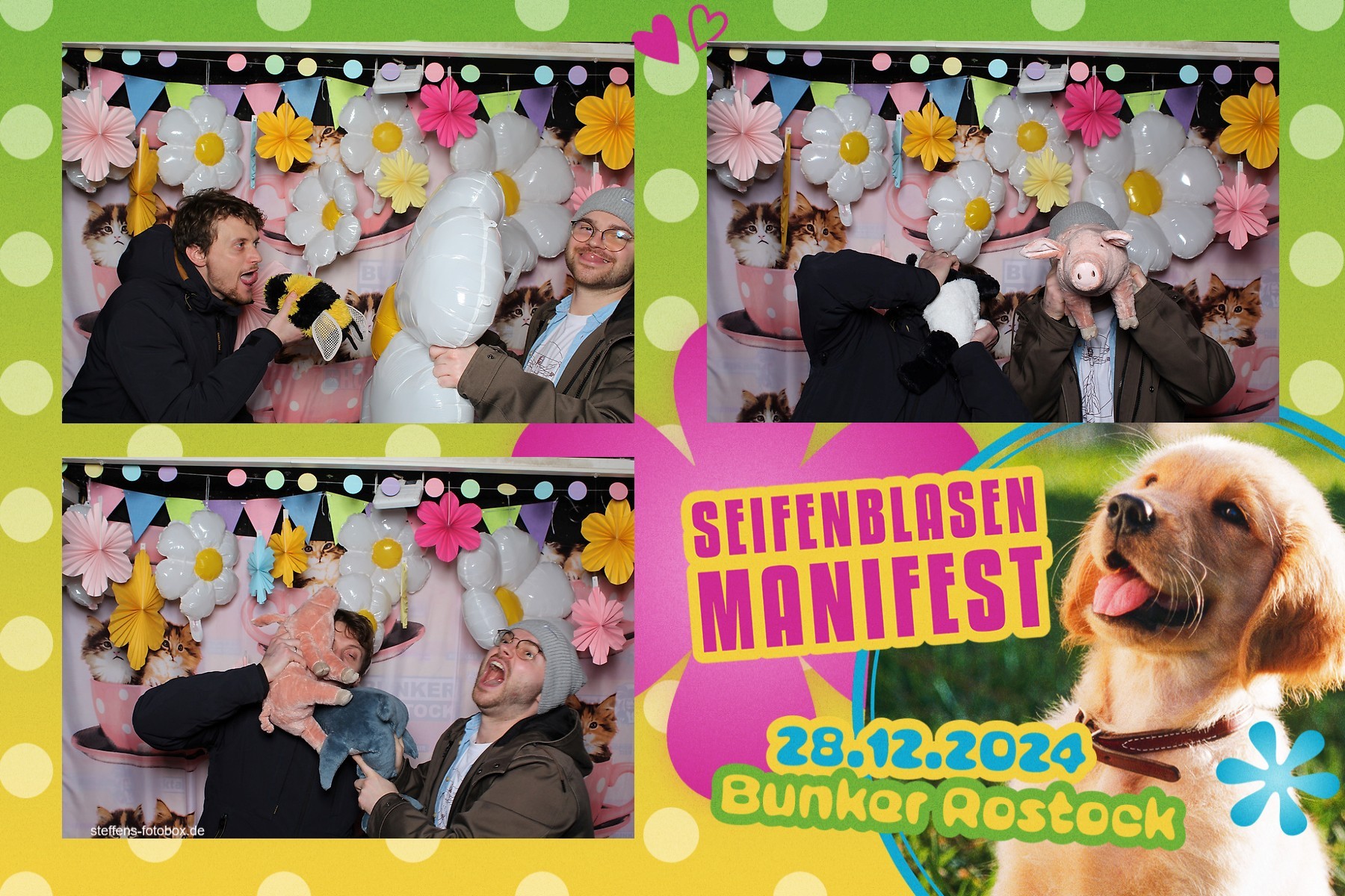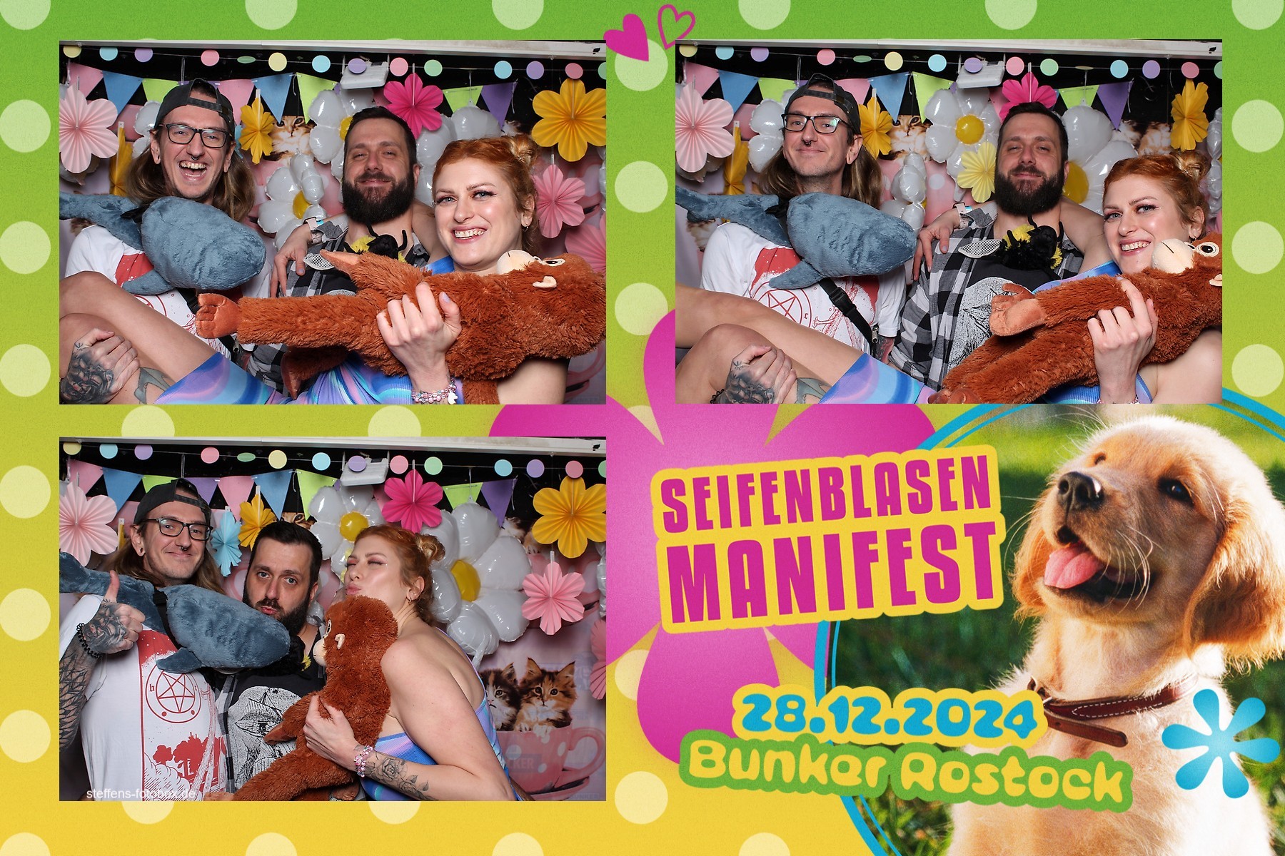 Alle Fotos aus der Fotobox beim 30. Seifenblasenmanifest am 28.12.2024 im Bunker Rostock.