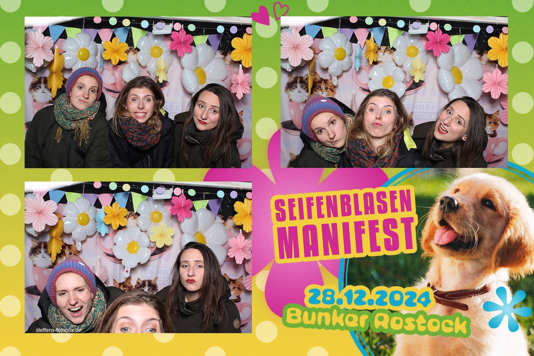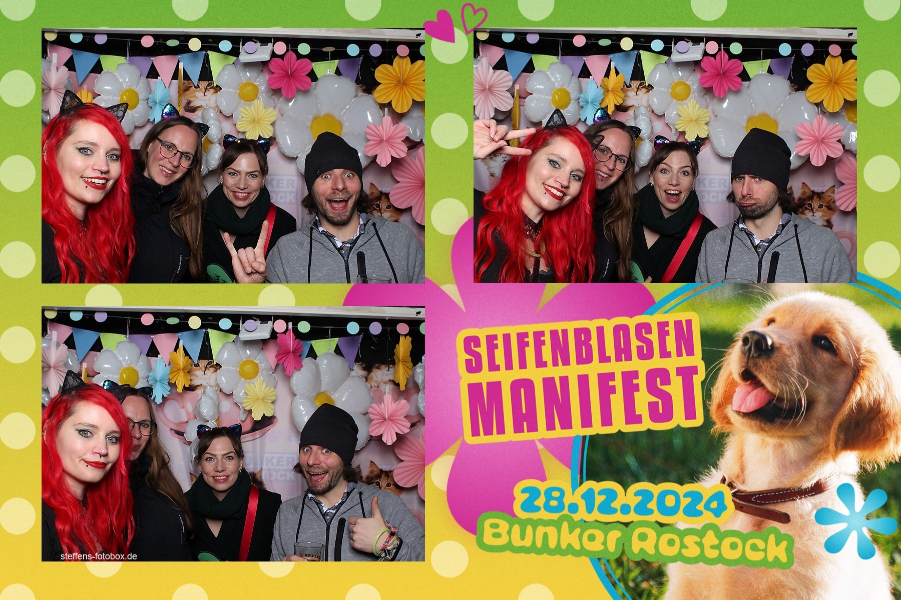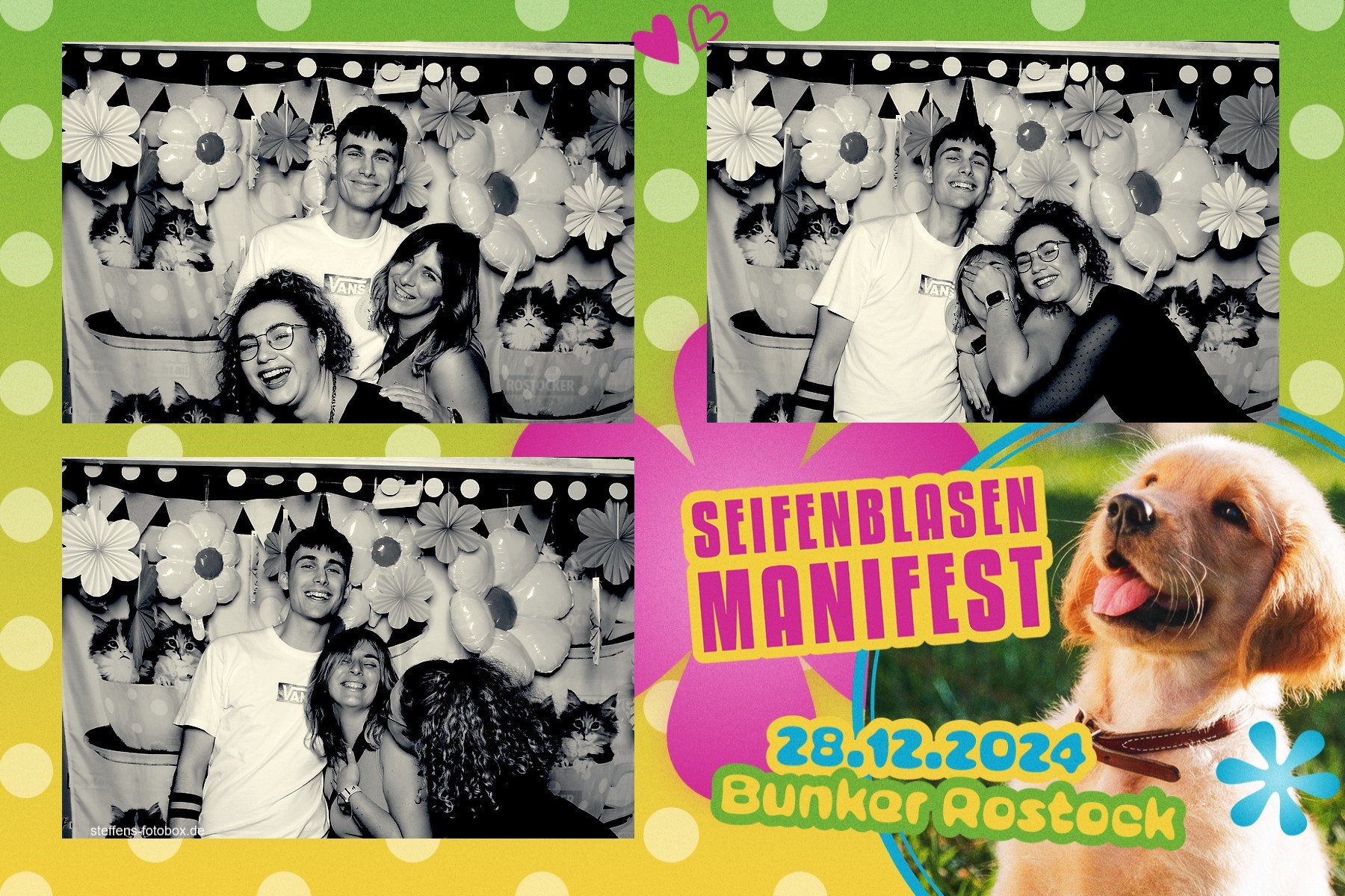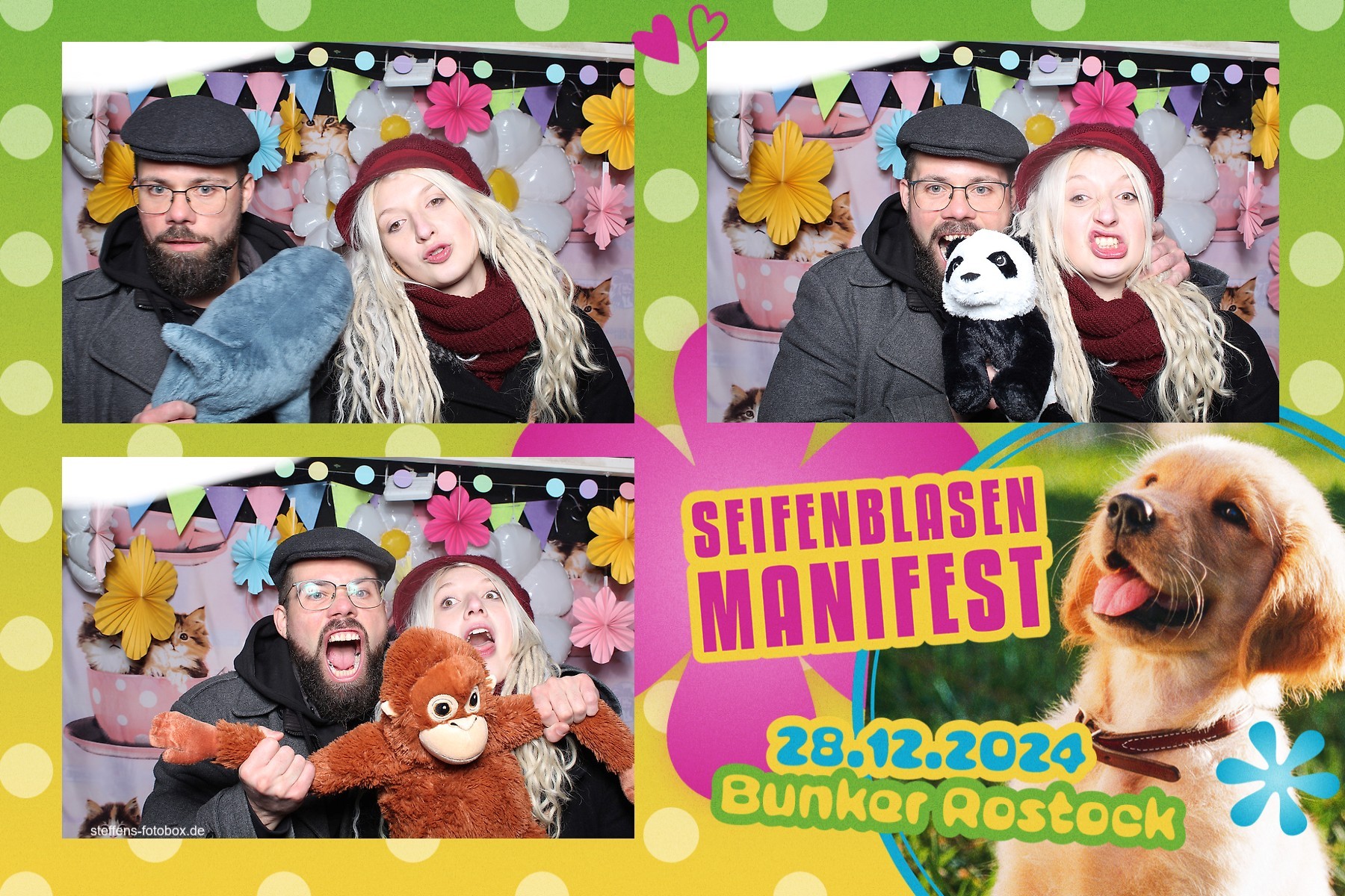 Alle Fotos aus der Fotobox beim 30. Seifenblasenmanifest am 28.12.2024 im Bunker Rostock.