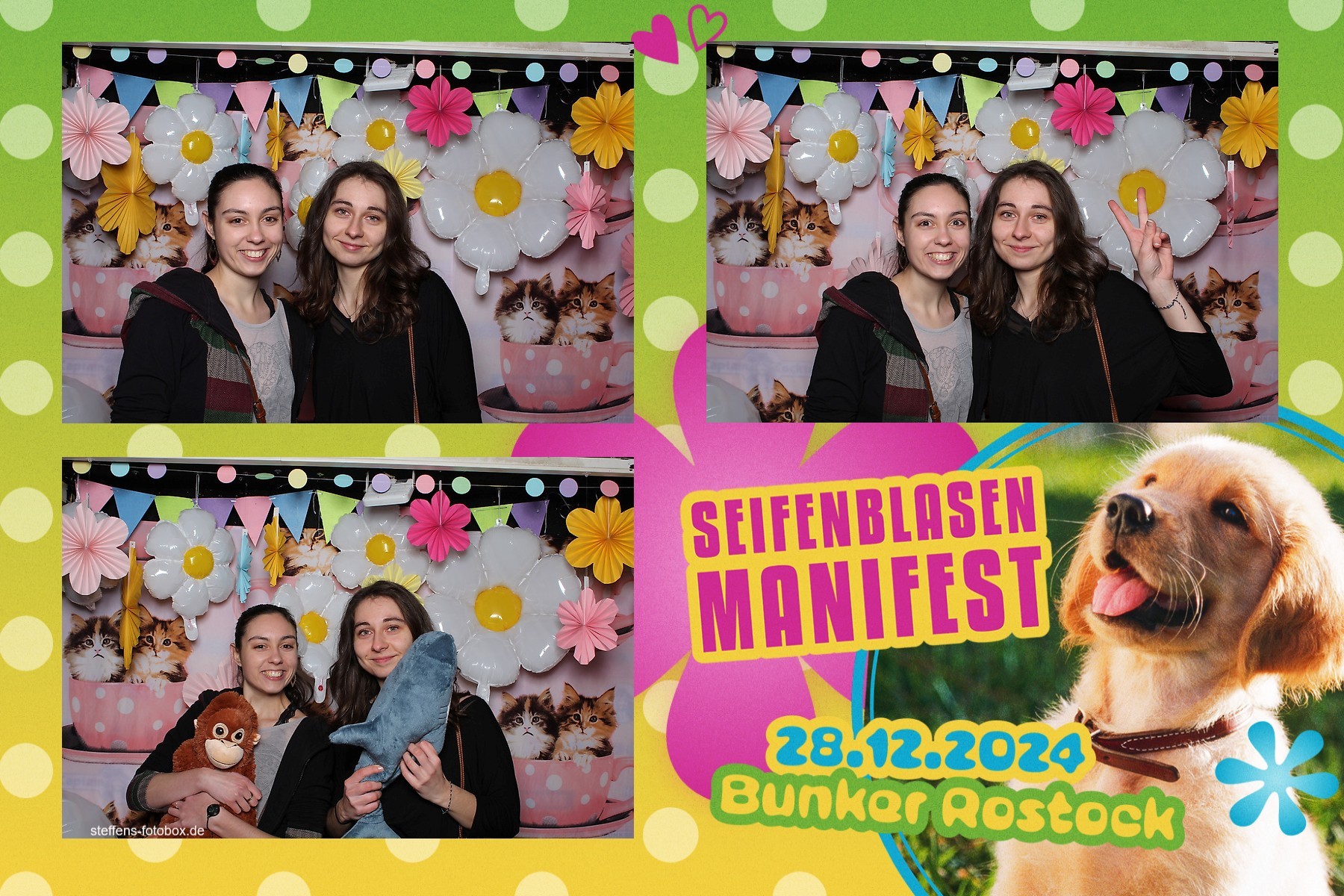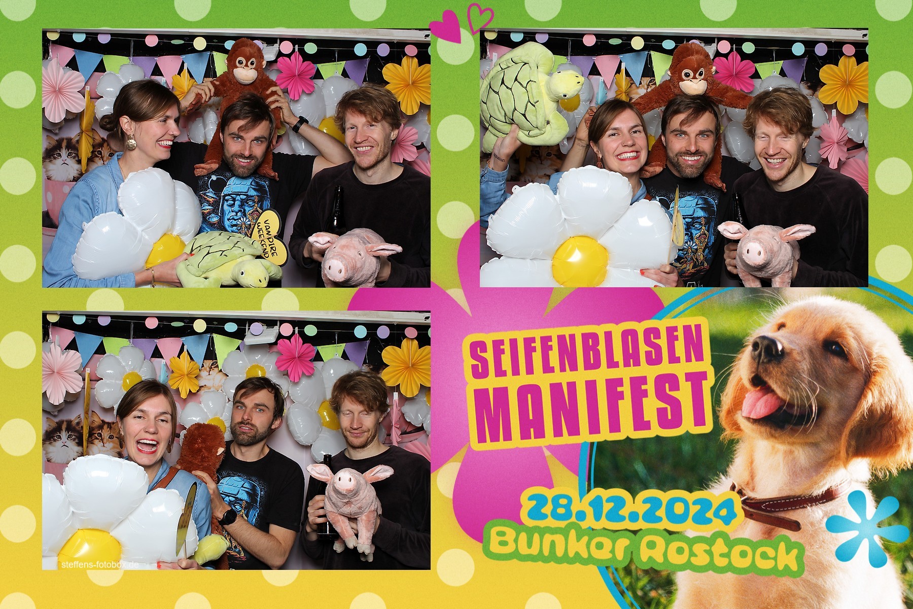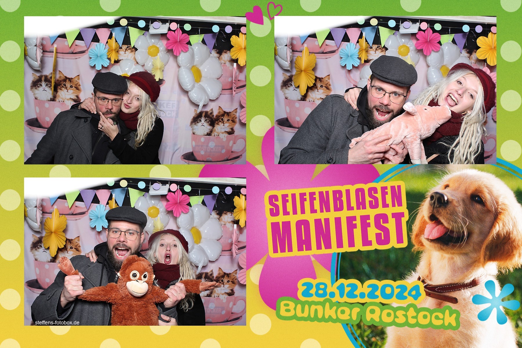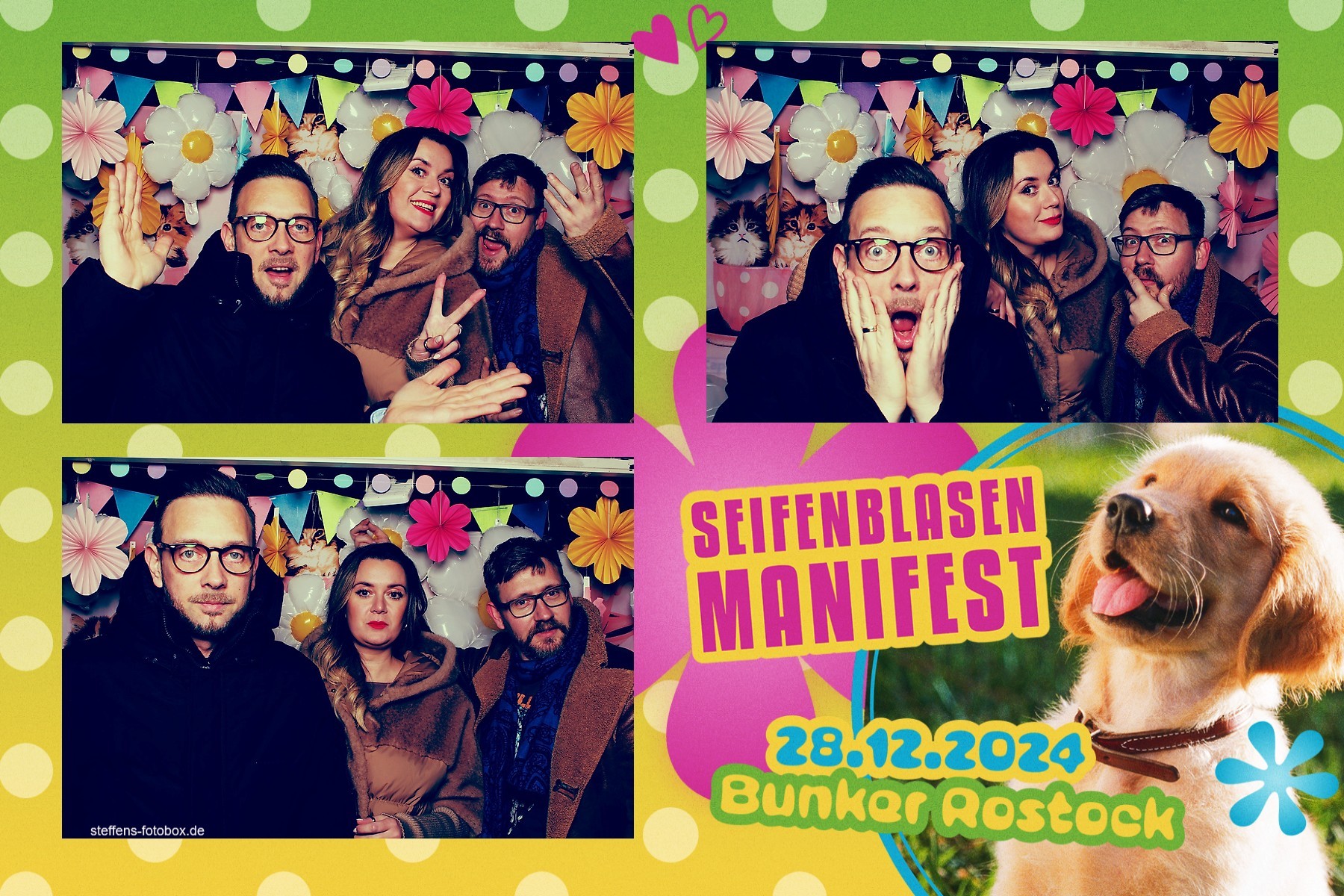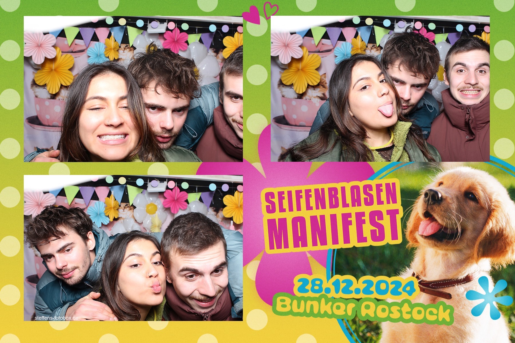 Alle Fotos aus der Fotobox beim 30. Seifenblasenmanifest am 28.12.2024 im Bunker Rostock.