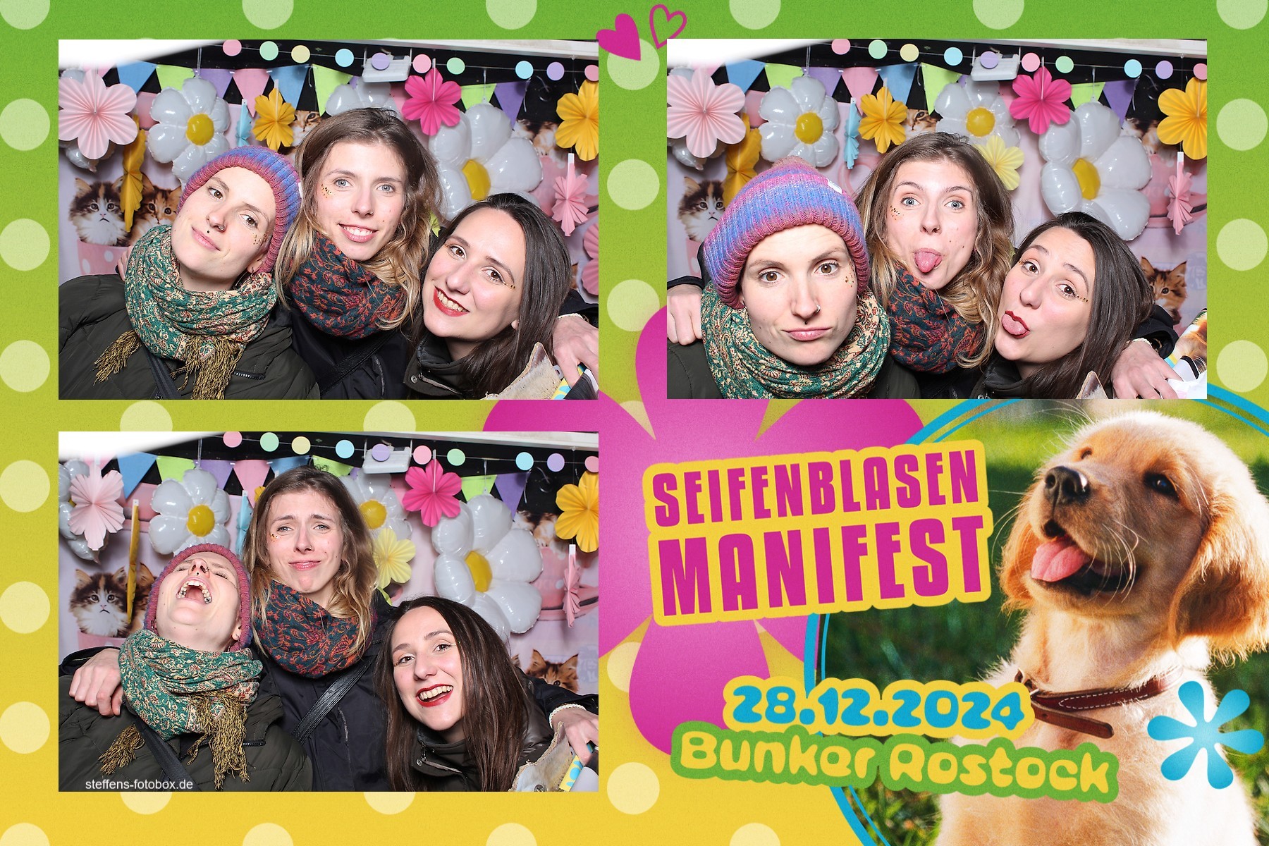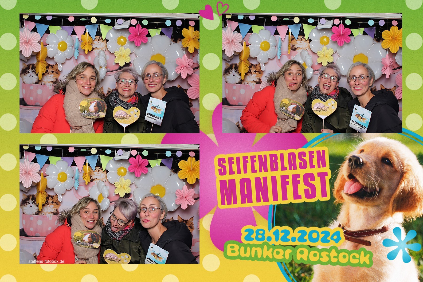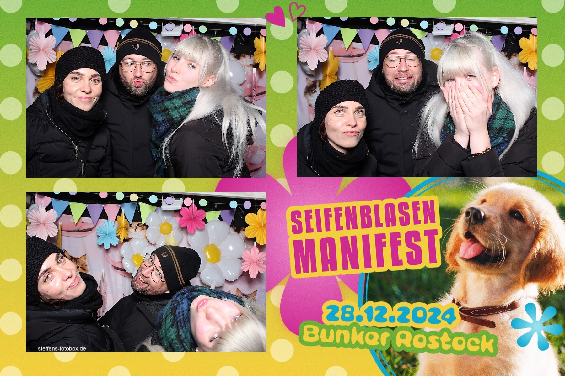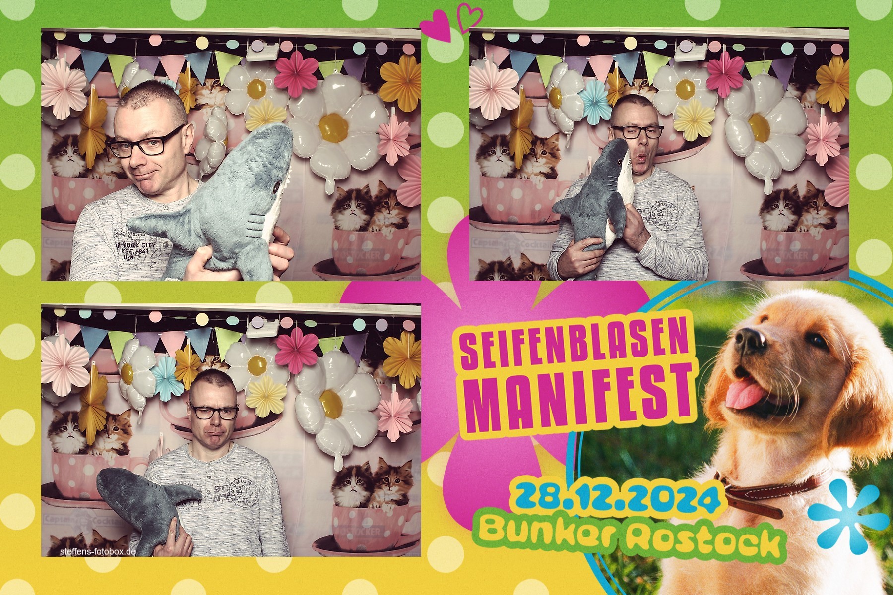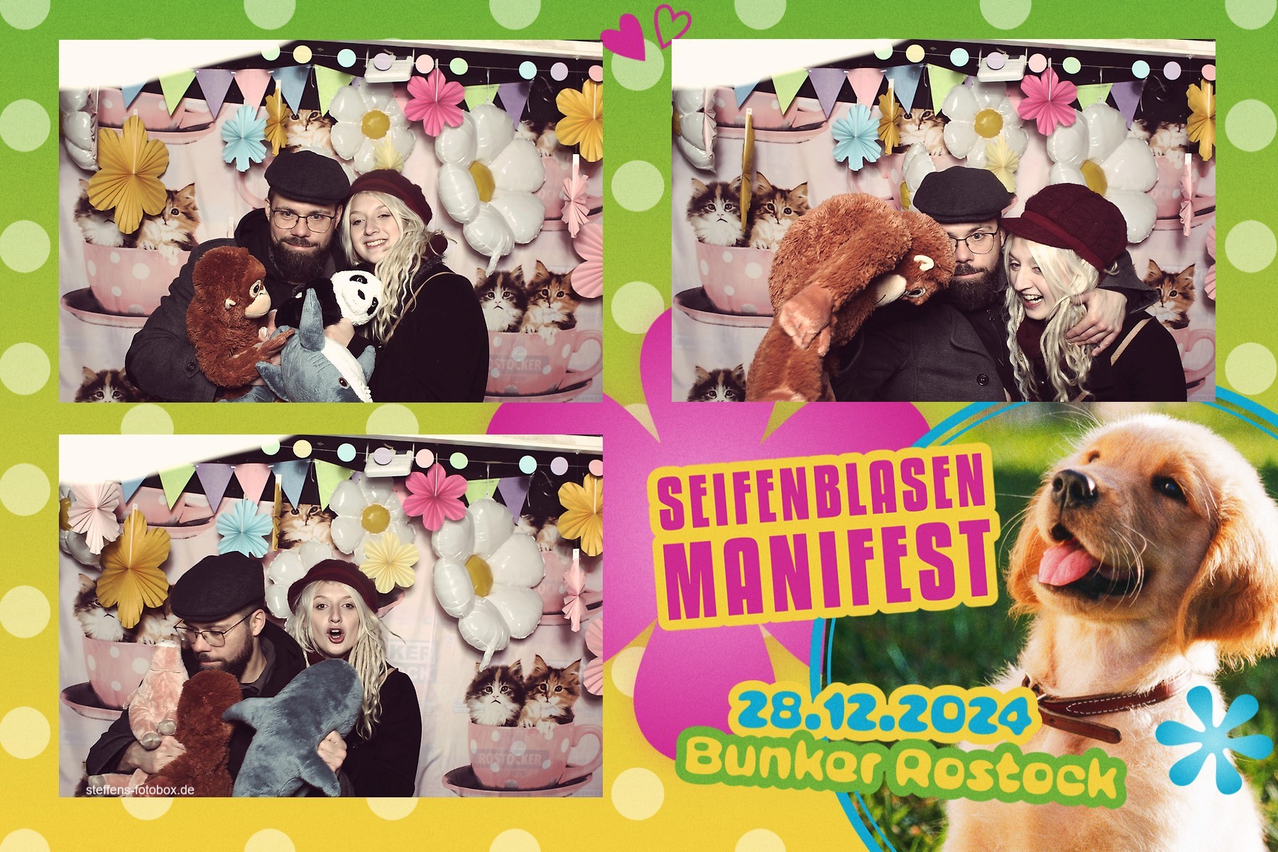 Alle Fotos aus der Fotobox beim 30. Seifenblasenmanifest am 28.12.2024 im Bunker Rostock.