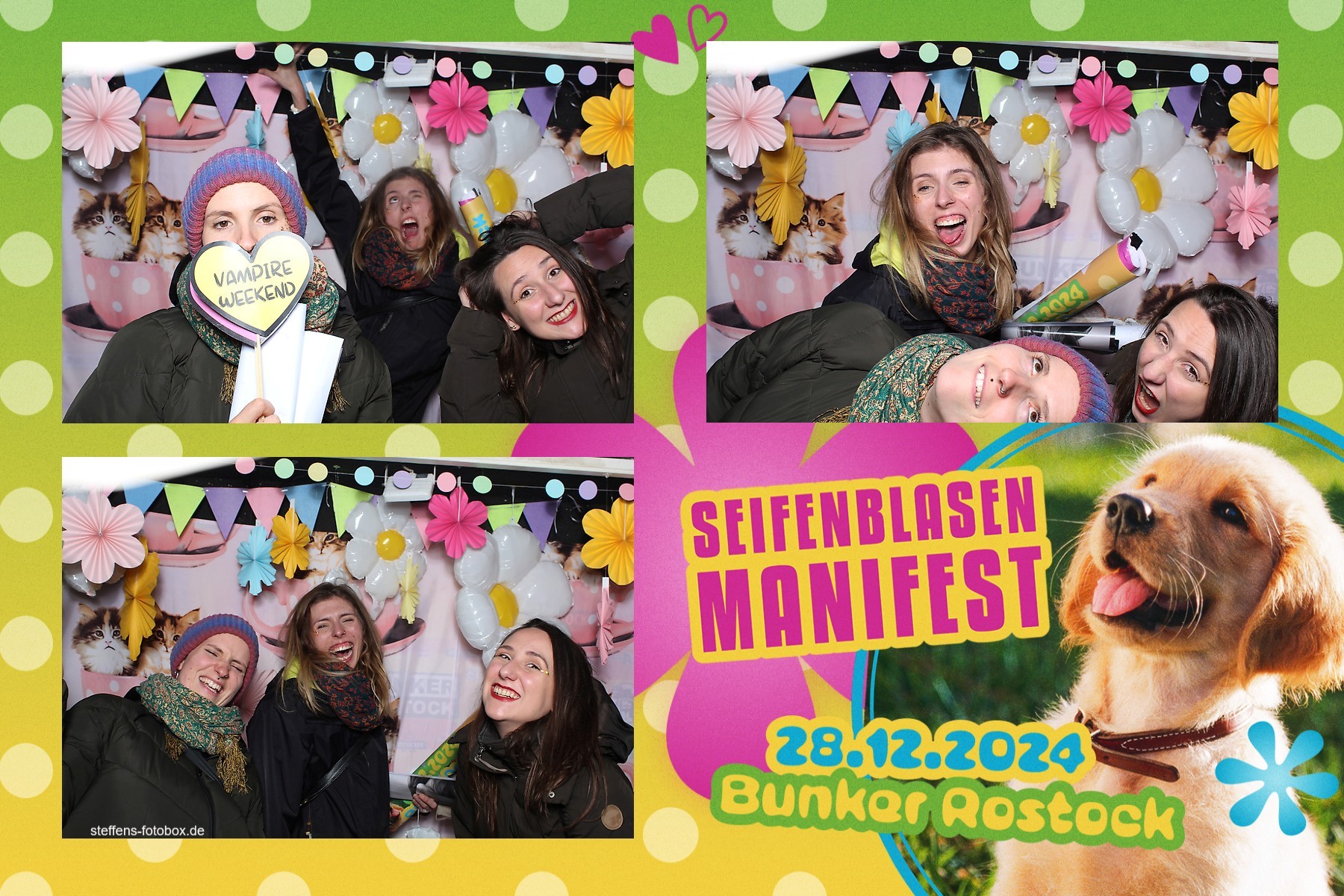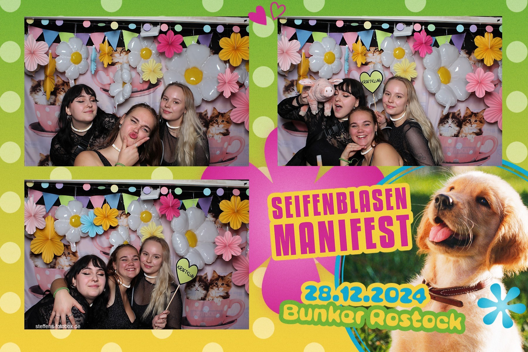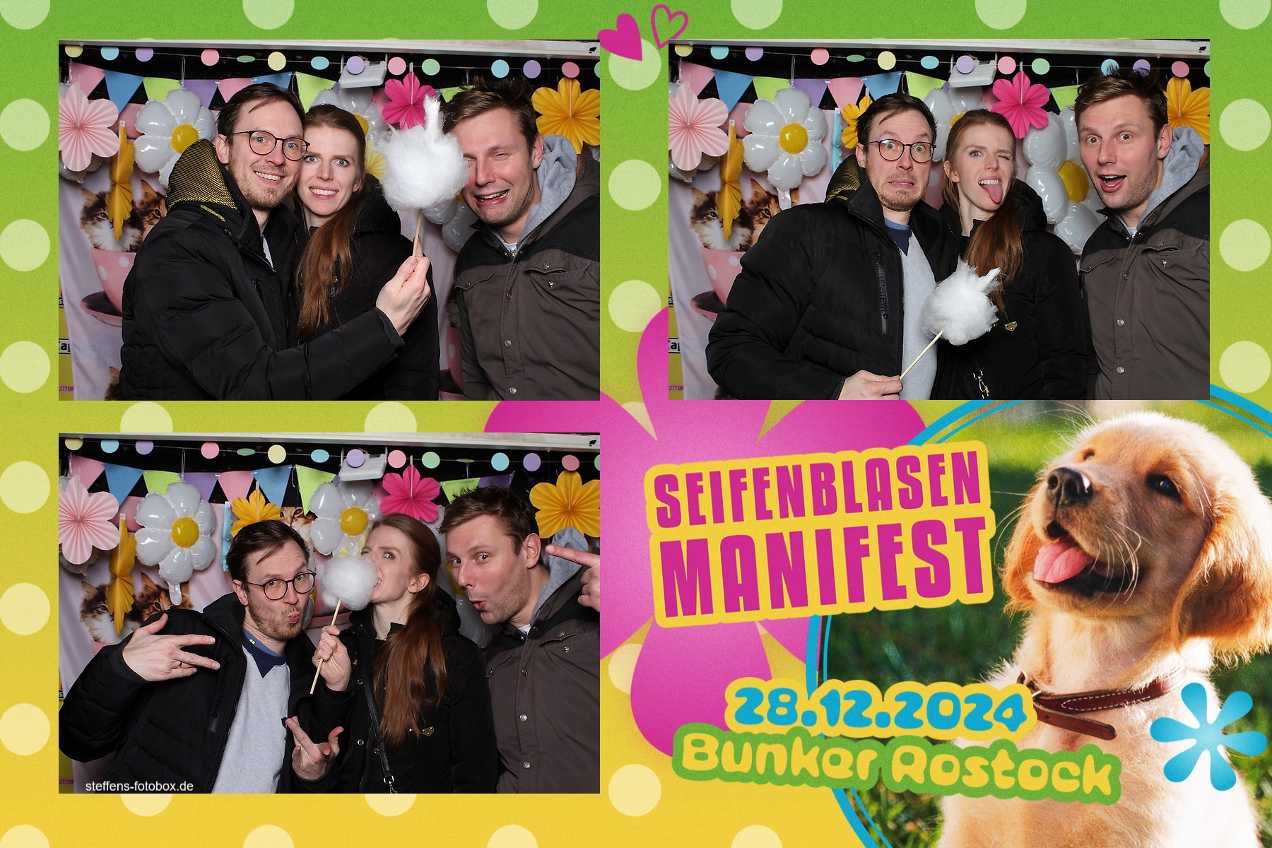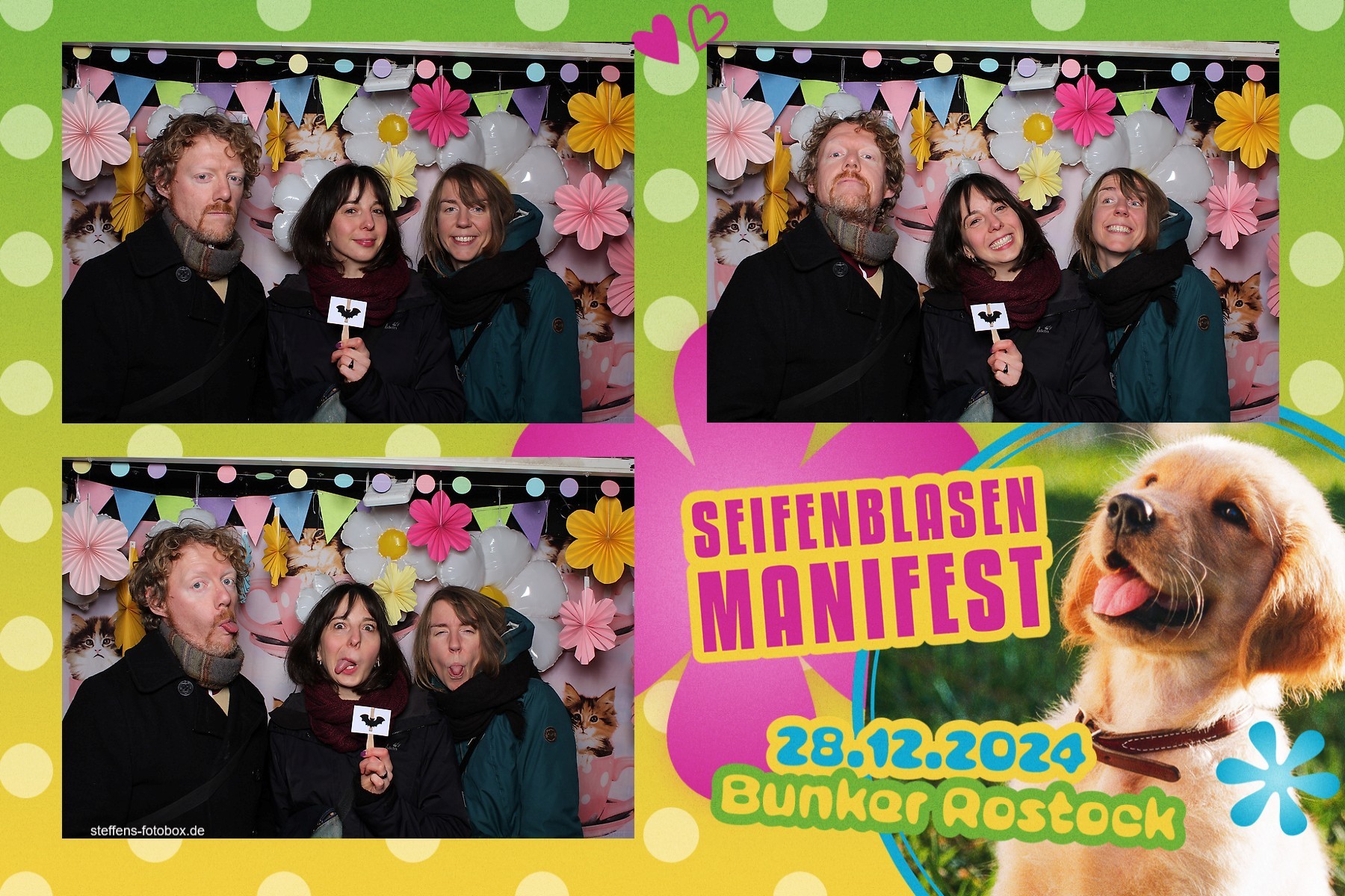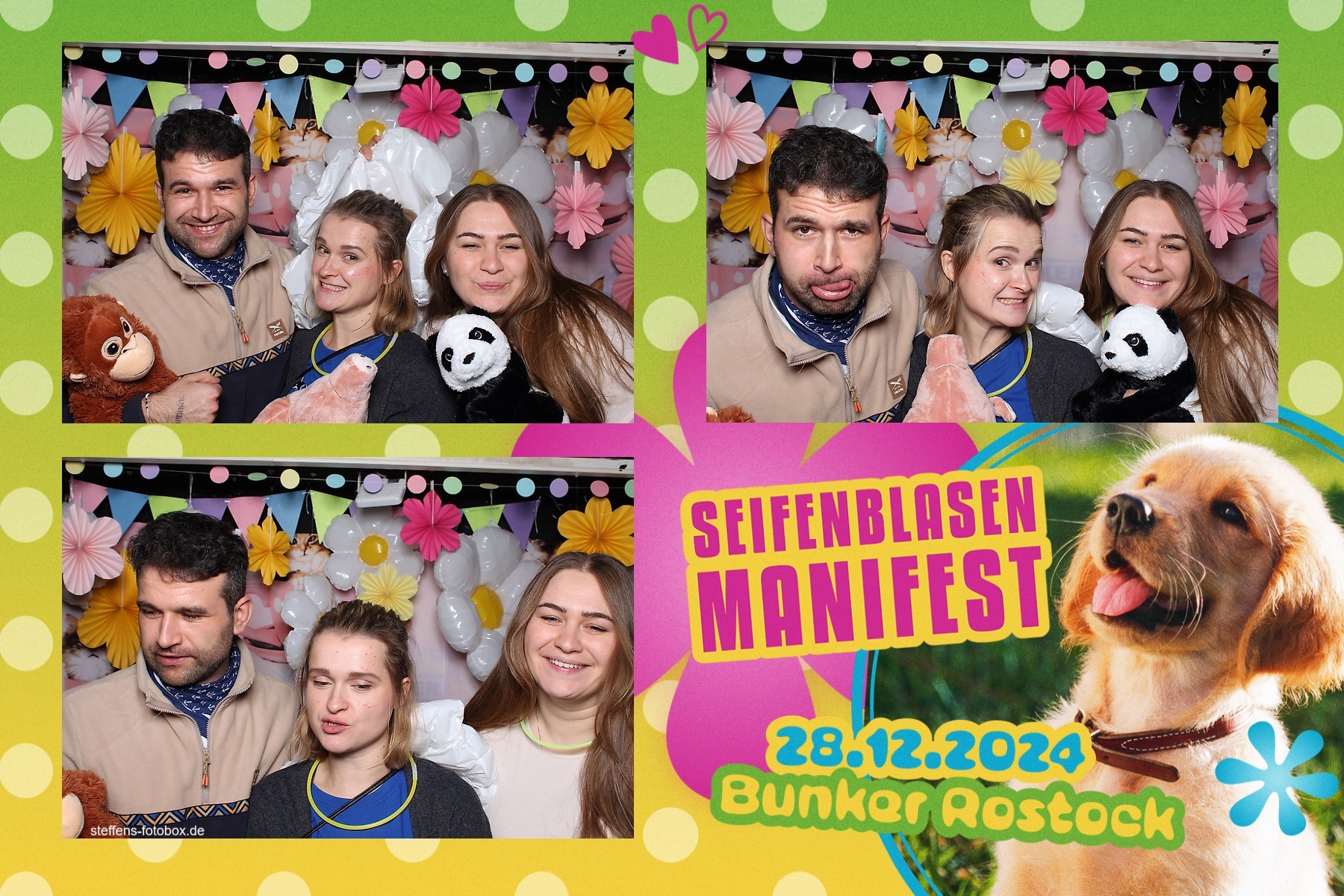 Alle Fotos aus der Fotobox beim 30. Seifenblasenmanifest am 28.12.2024 im Bunker Rostock.