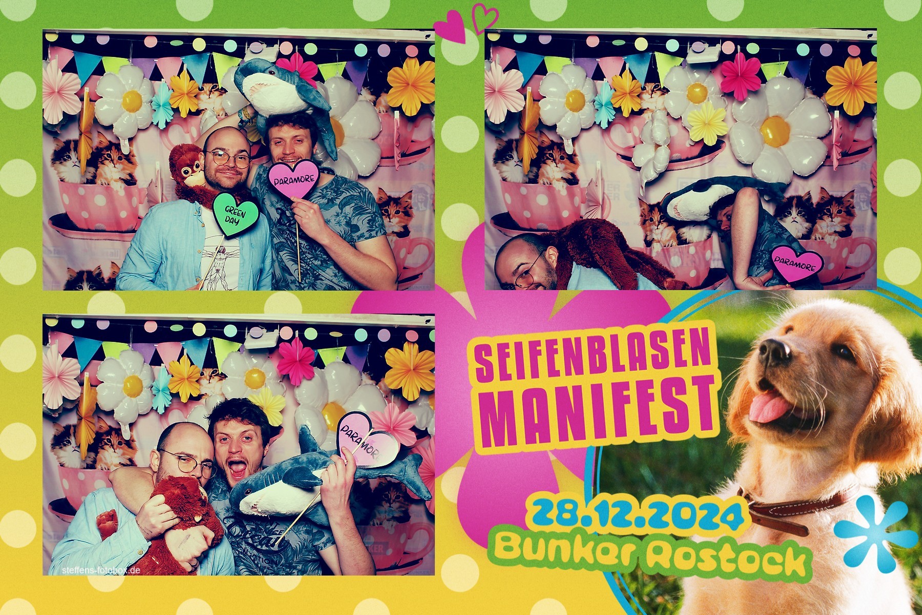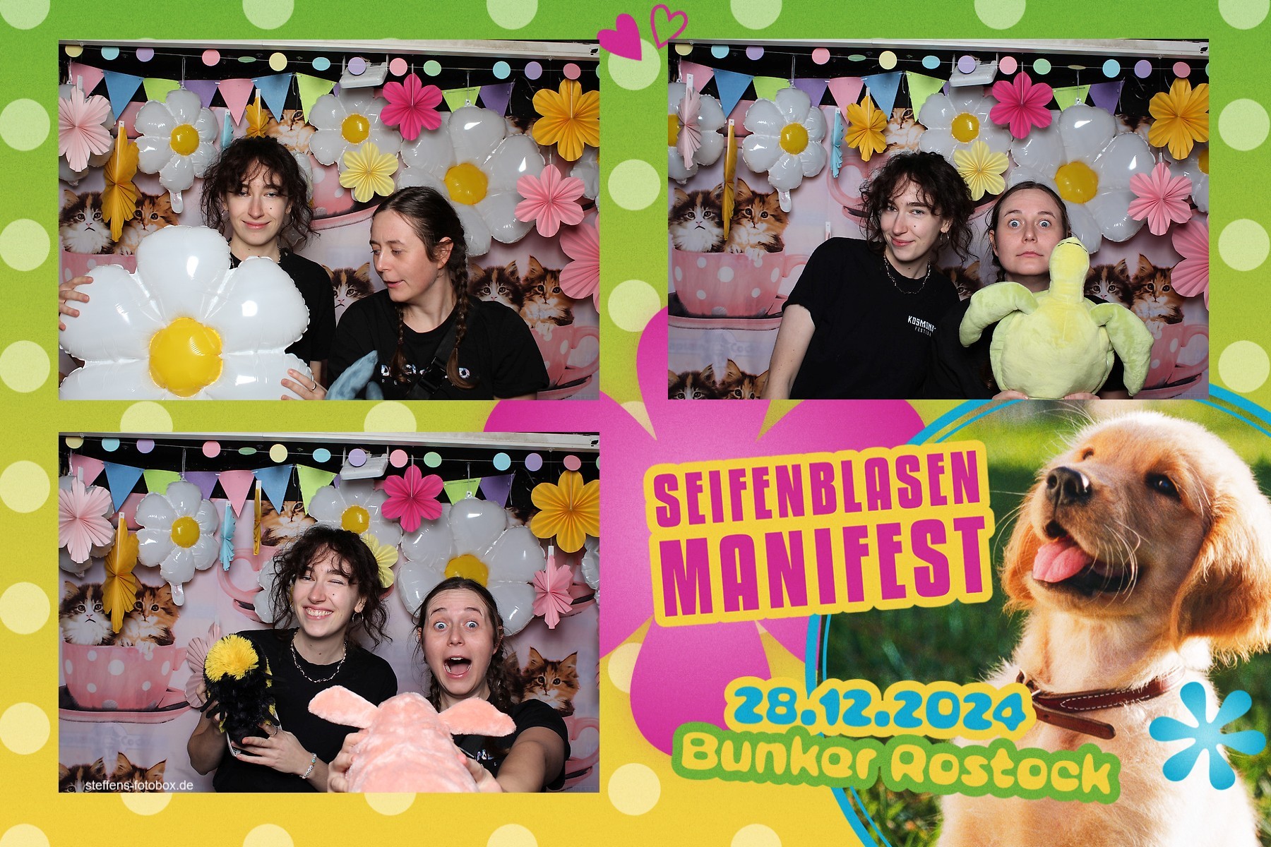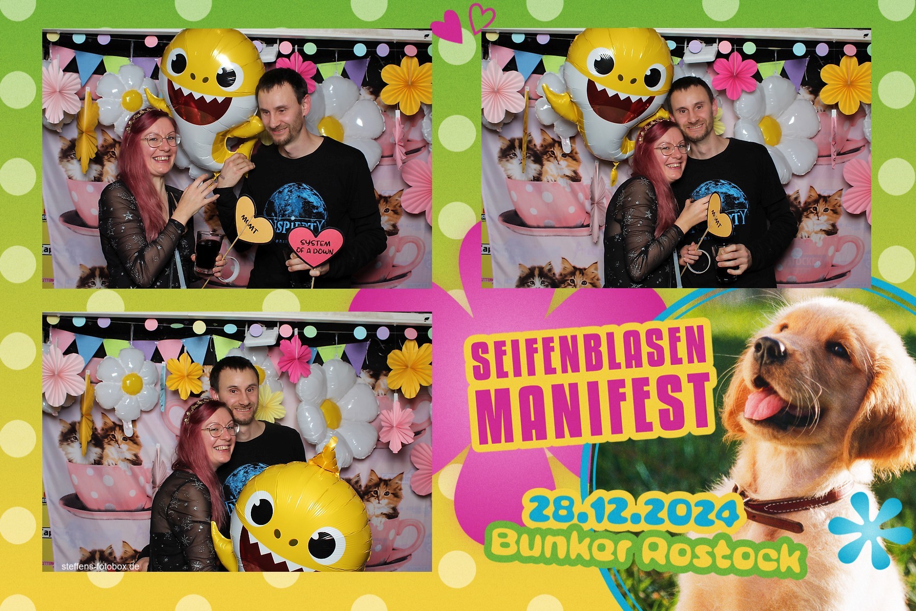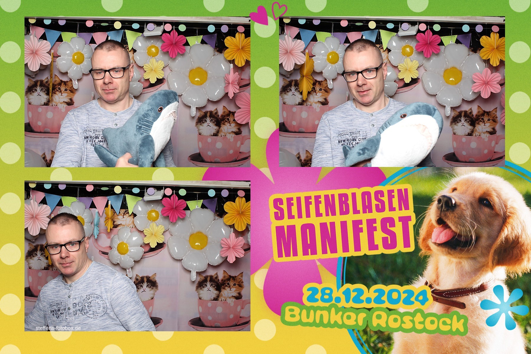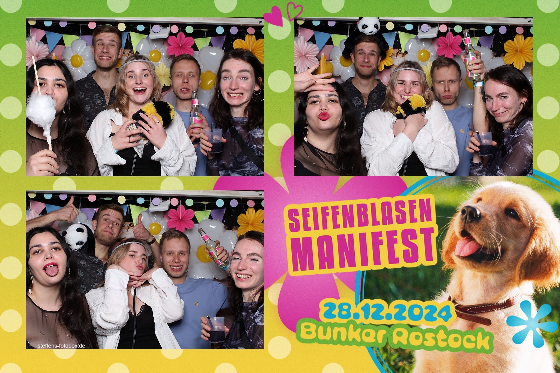 Alle Fotos aus der Fotobox beim 30. Seifenblasenmanifest am 28.12.2024 im Bunker Rostock.