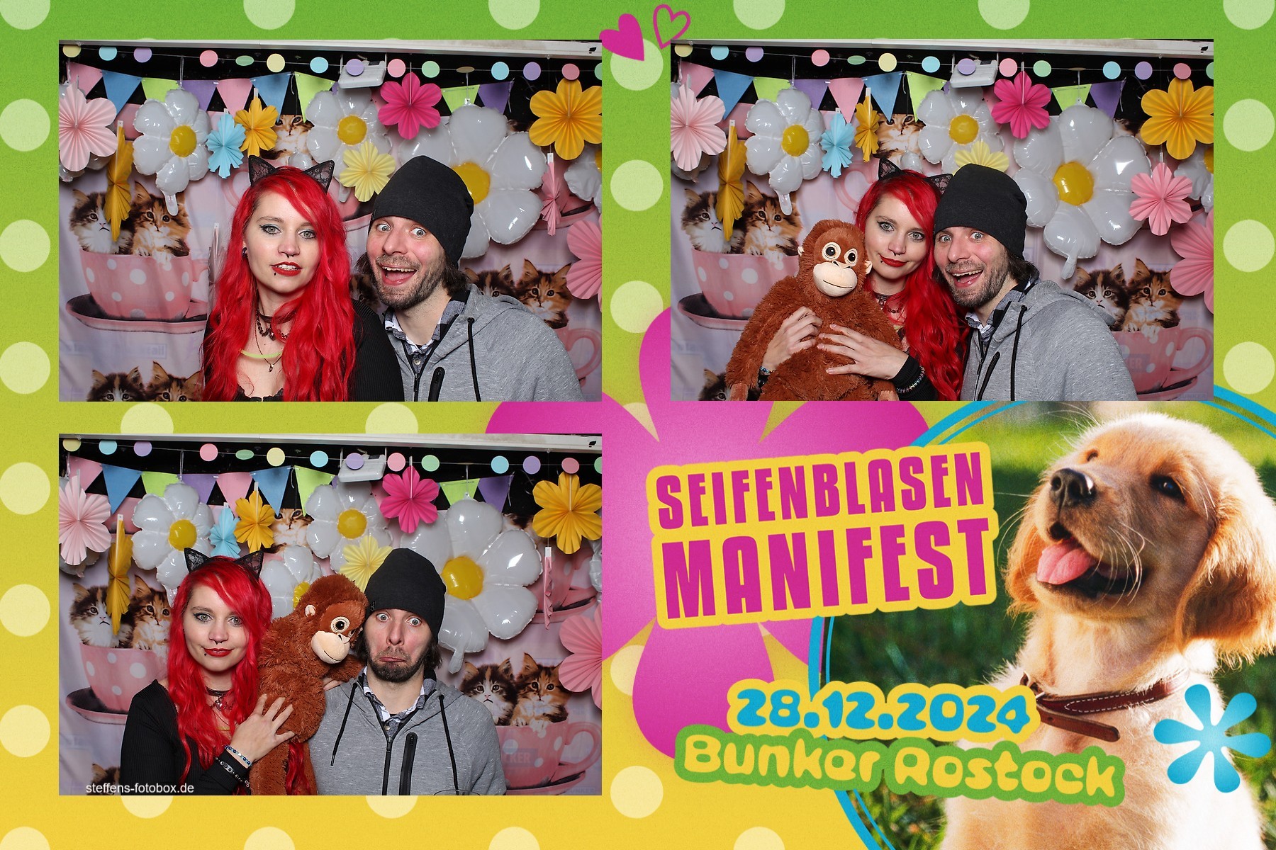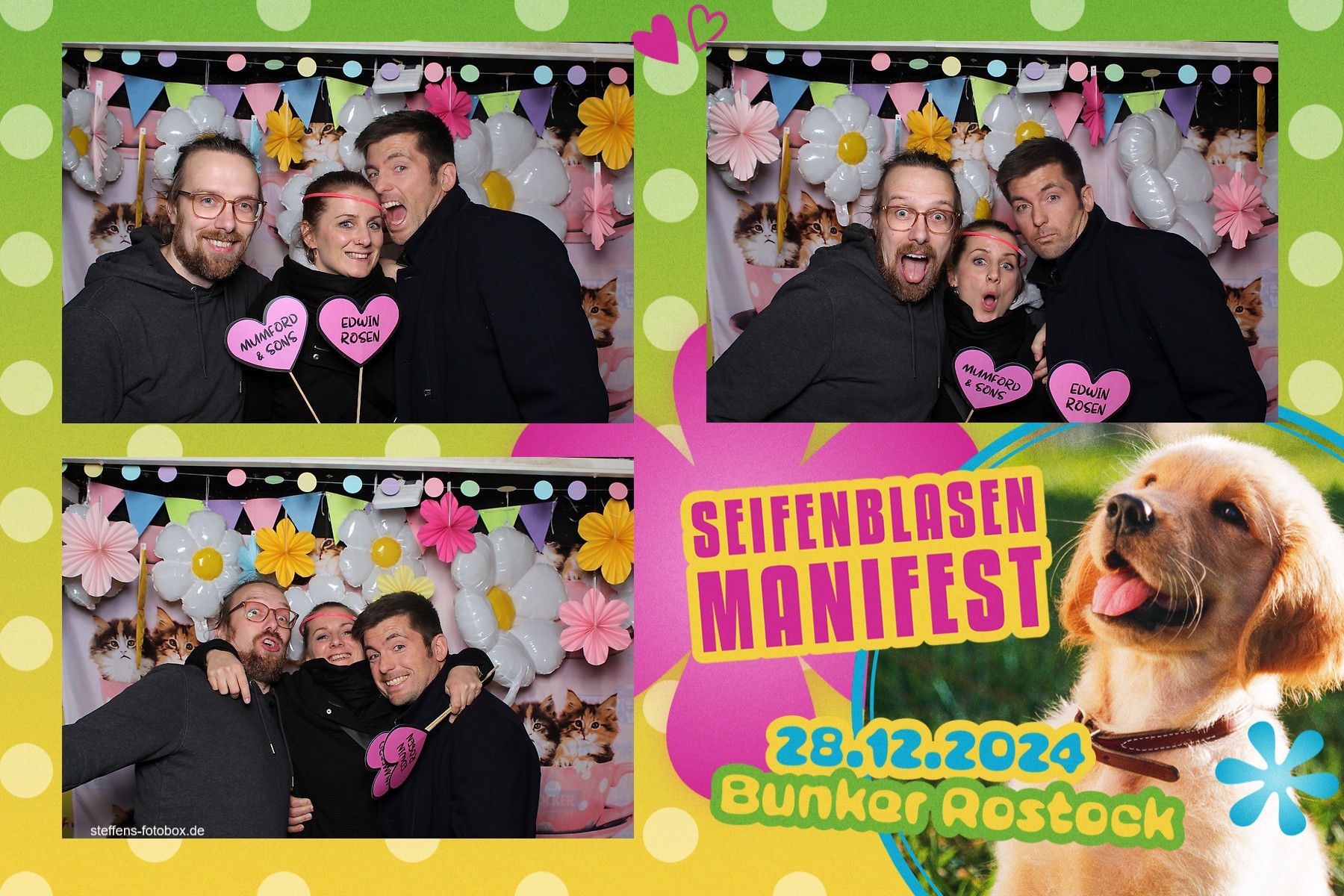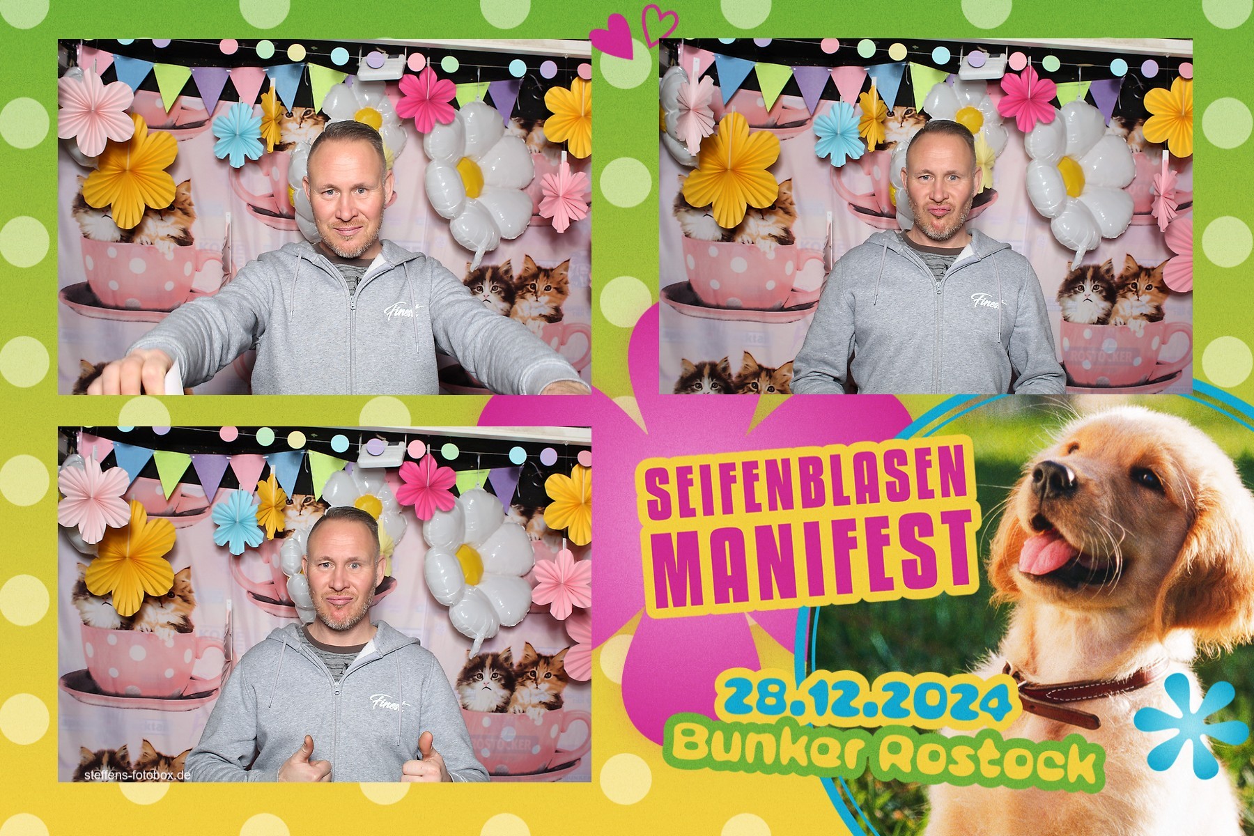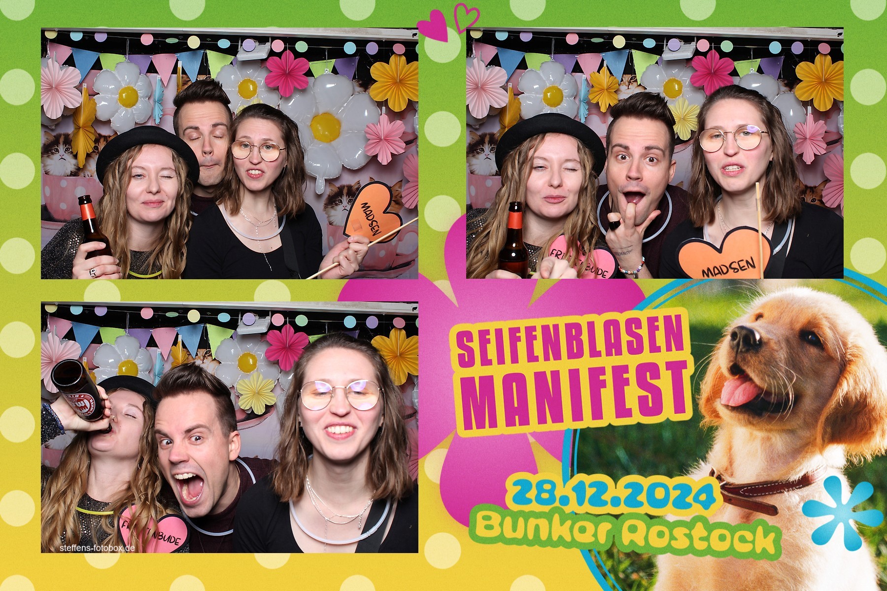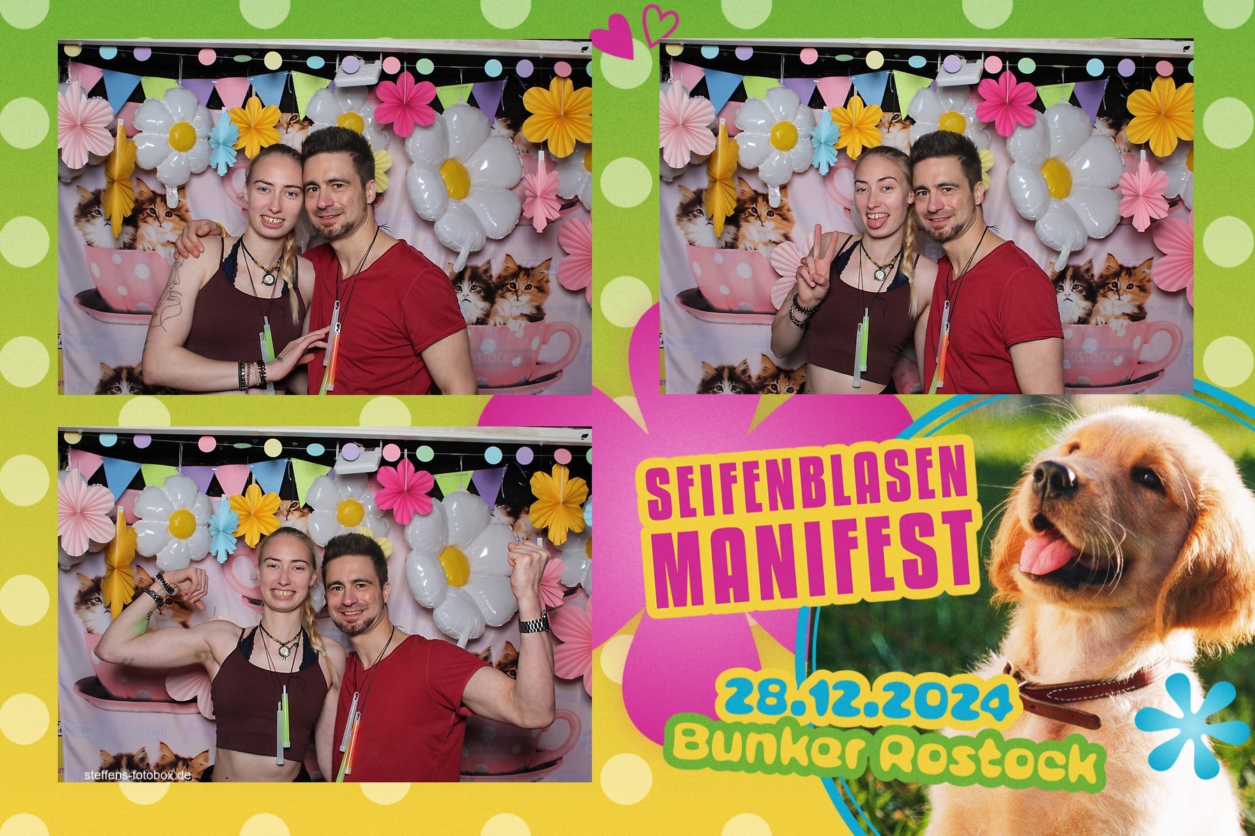 Alle Fotos aus der Fotobox beim 30. Seifenblasenmanifest am 28.12.2024 im Bunker Rostock.