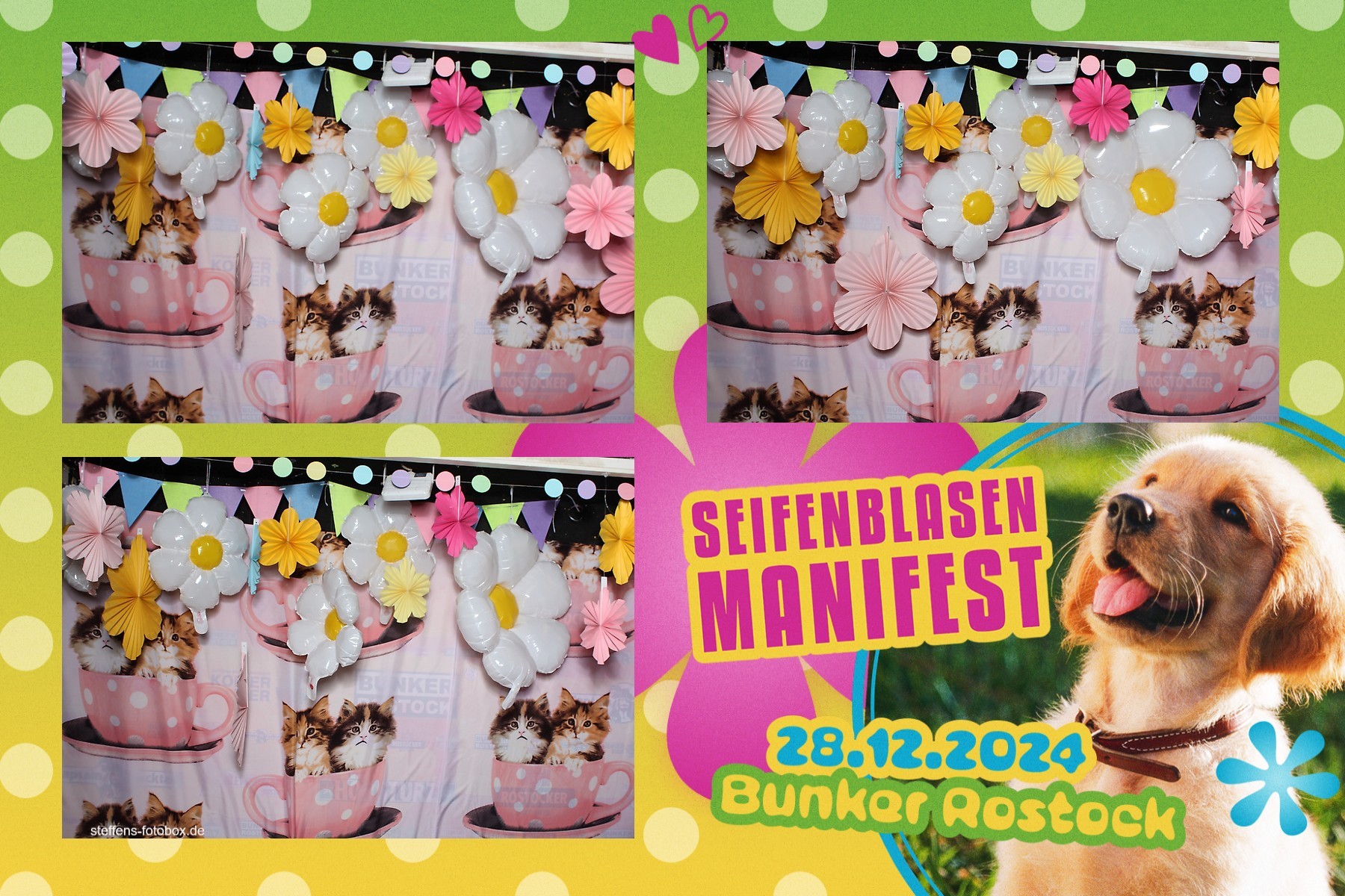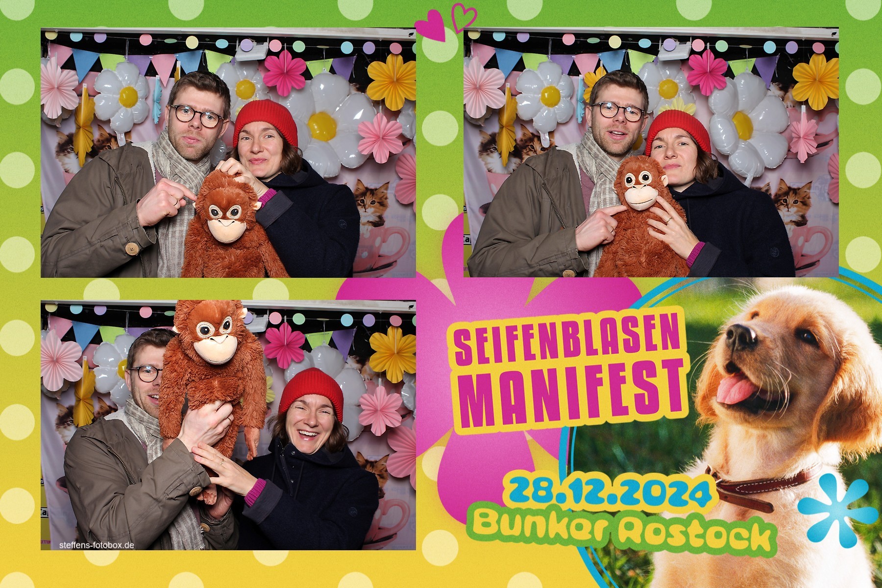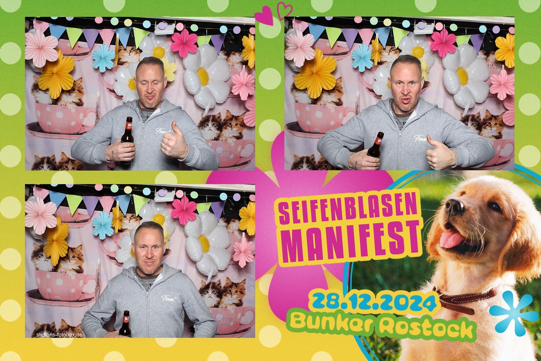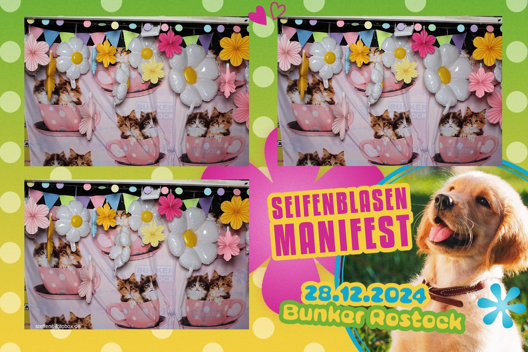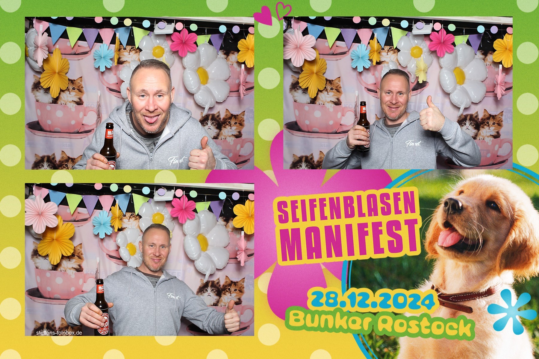Alle Fotos aus der Fotobox beim 30. Seifenblasenmanifest am 28.12.2024 im Bunker Rostock.